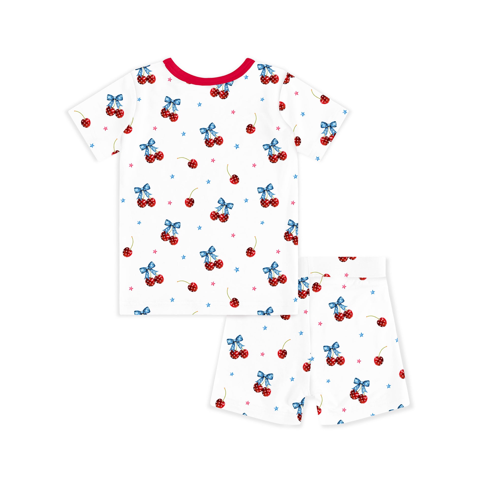 4th of July Cherry Bow Twinkling Stars Kids Bamboo Two-Piece Pajama Short Sleeve Set