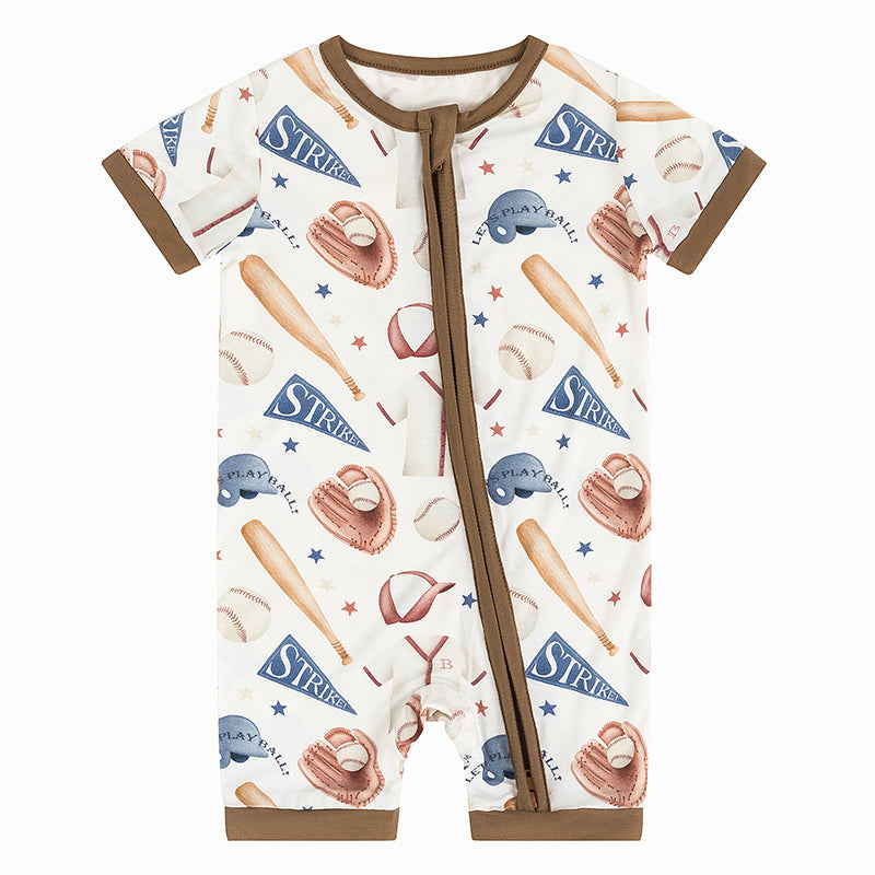 Pyjama court zippé en bambou pour bébé passionné de baseball