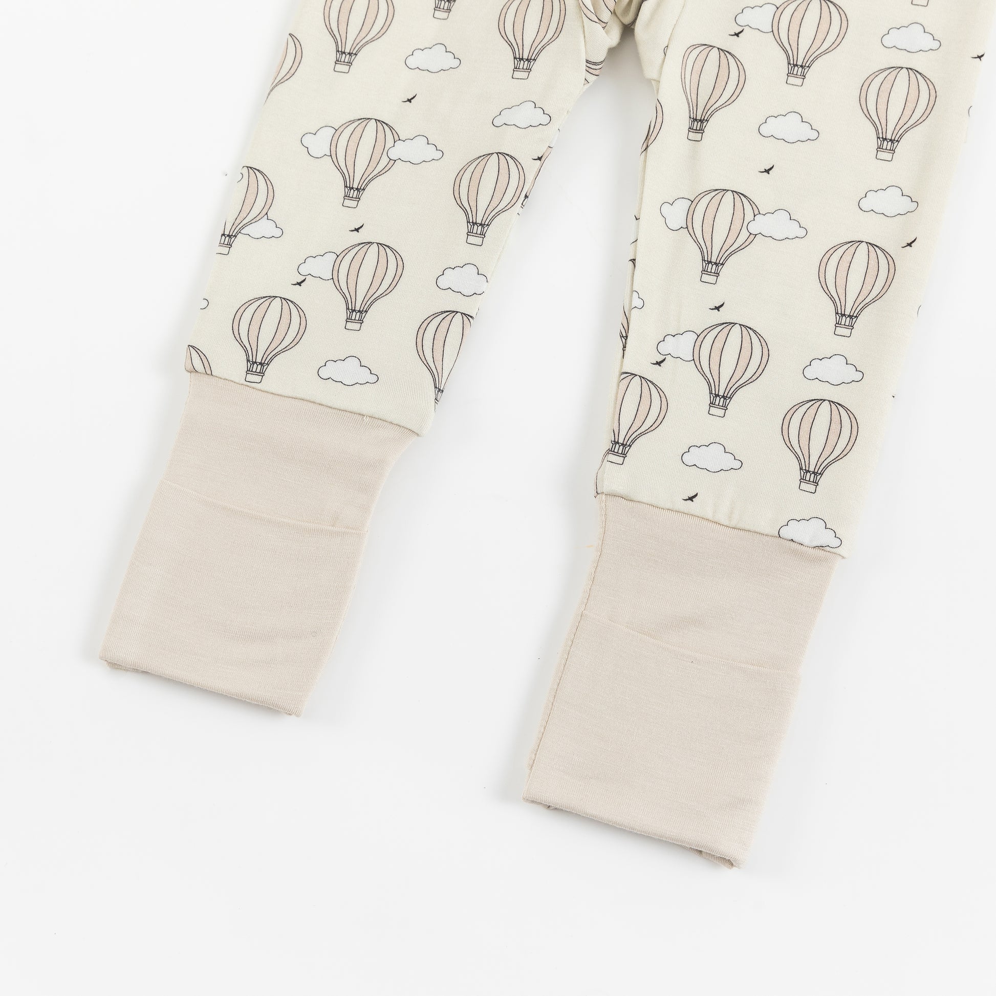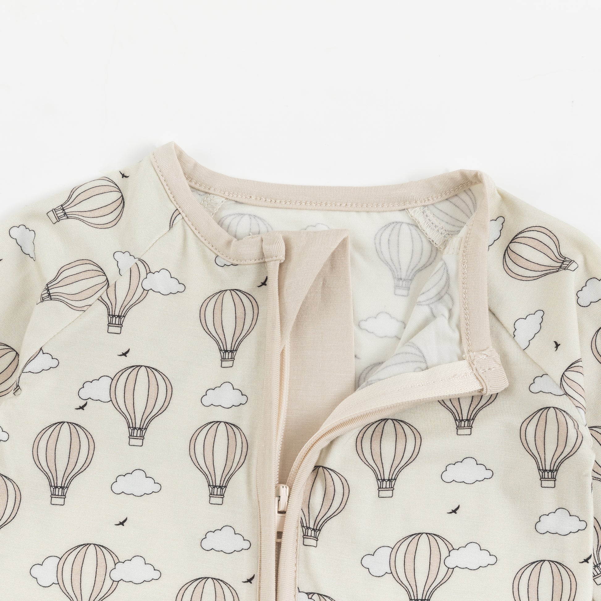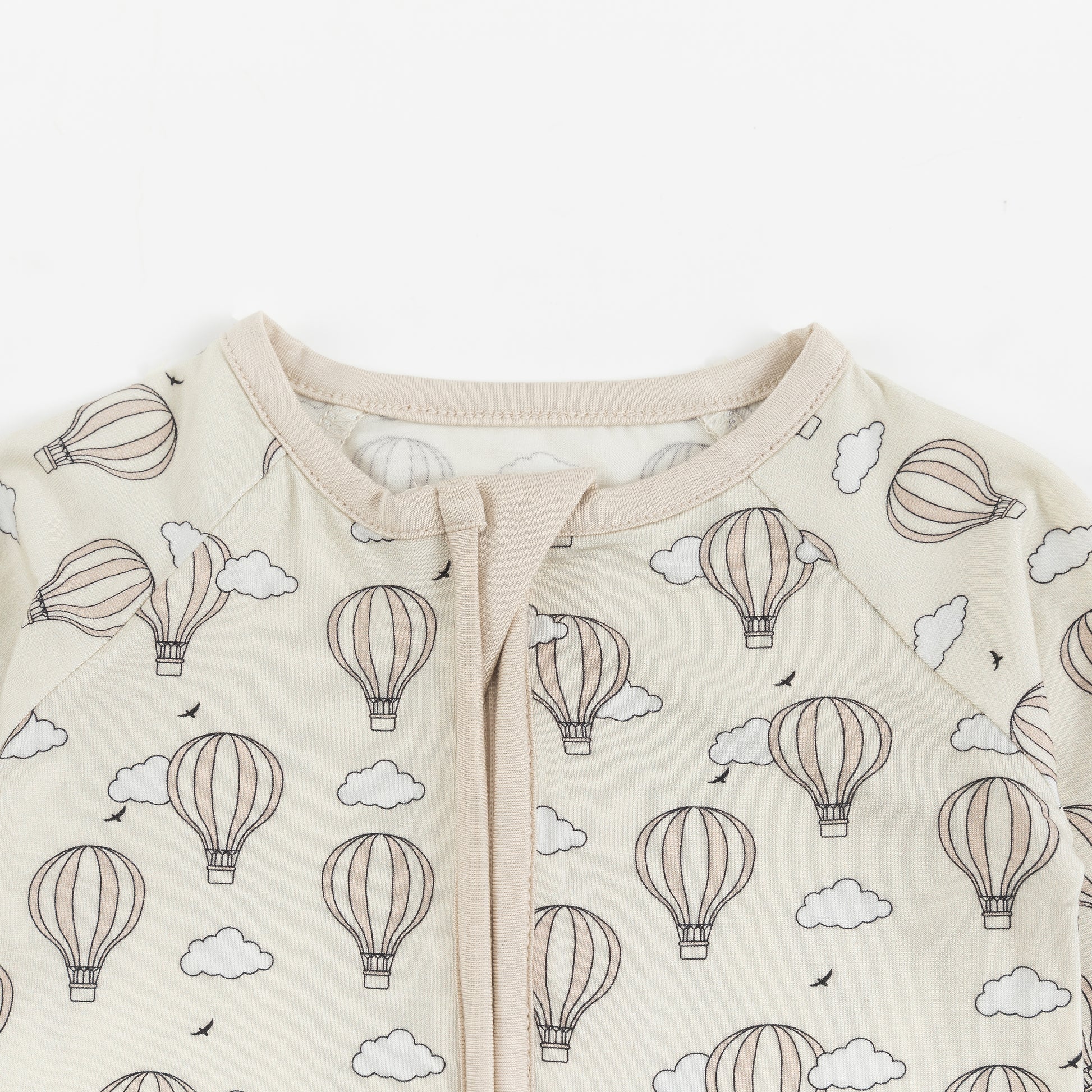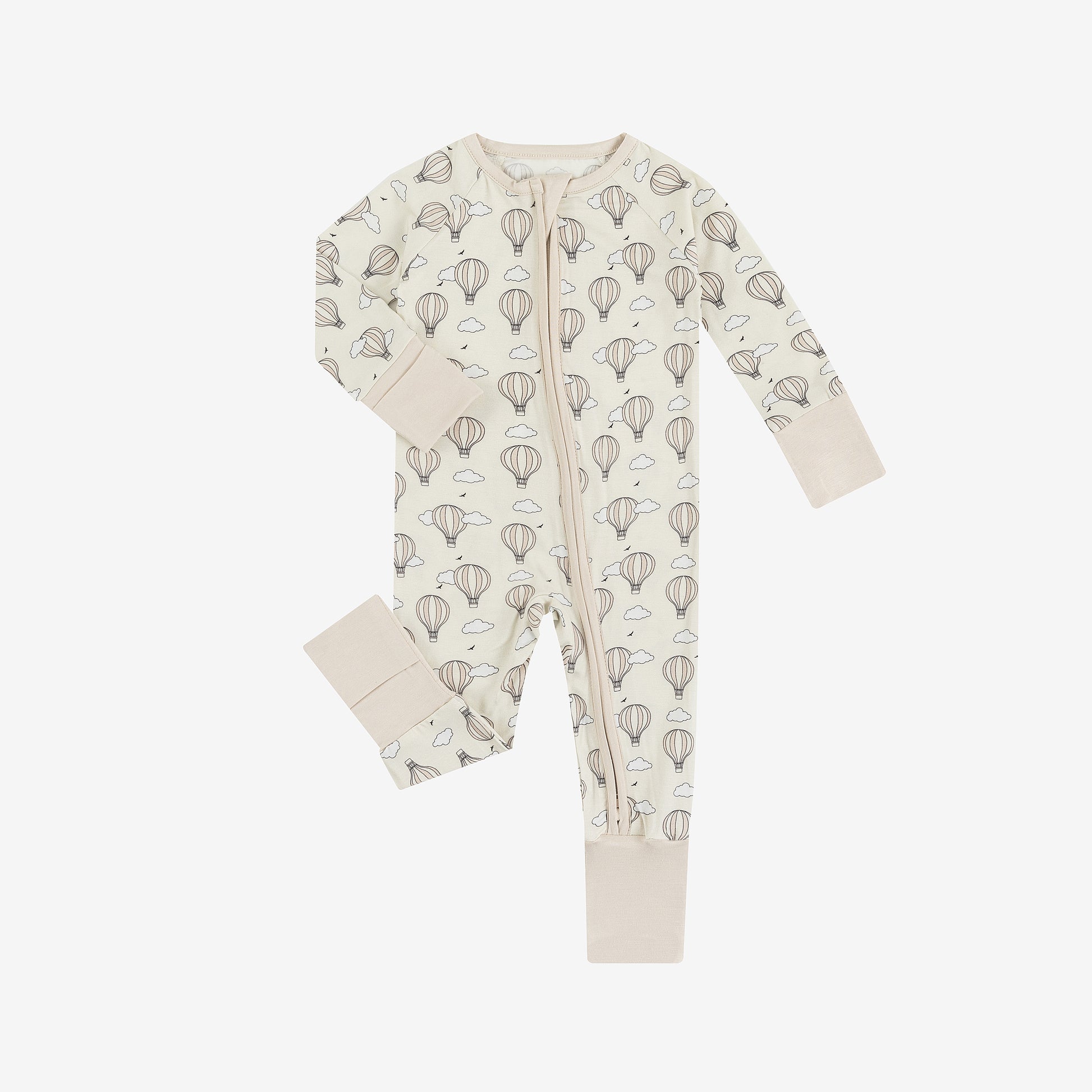Beige Hot Air Balloons & Clouds Baby Zip-Up Romper