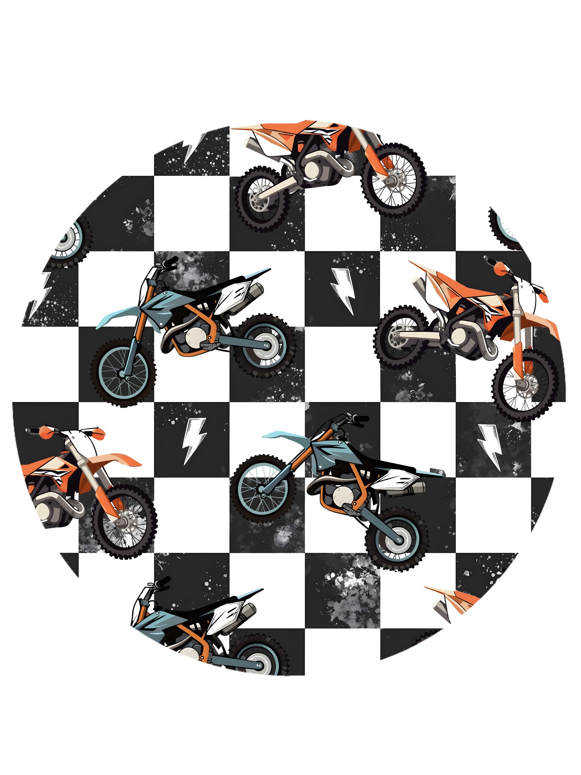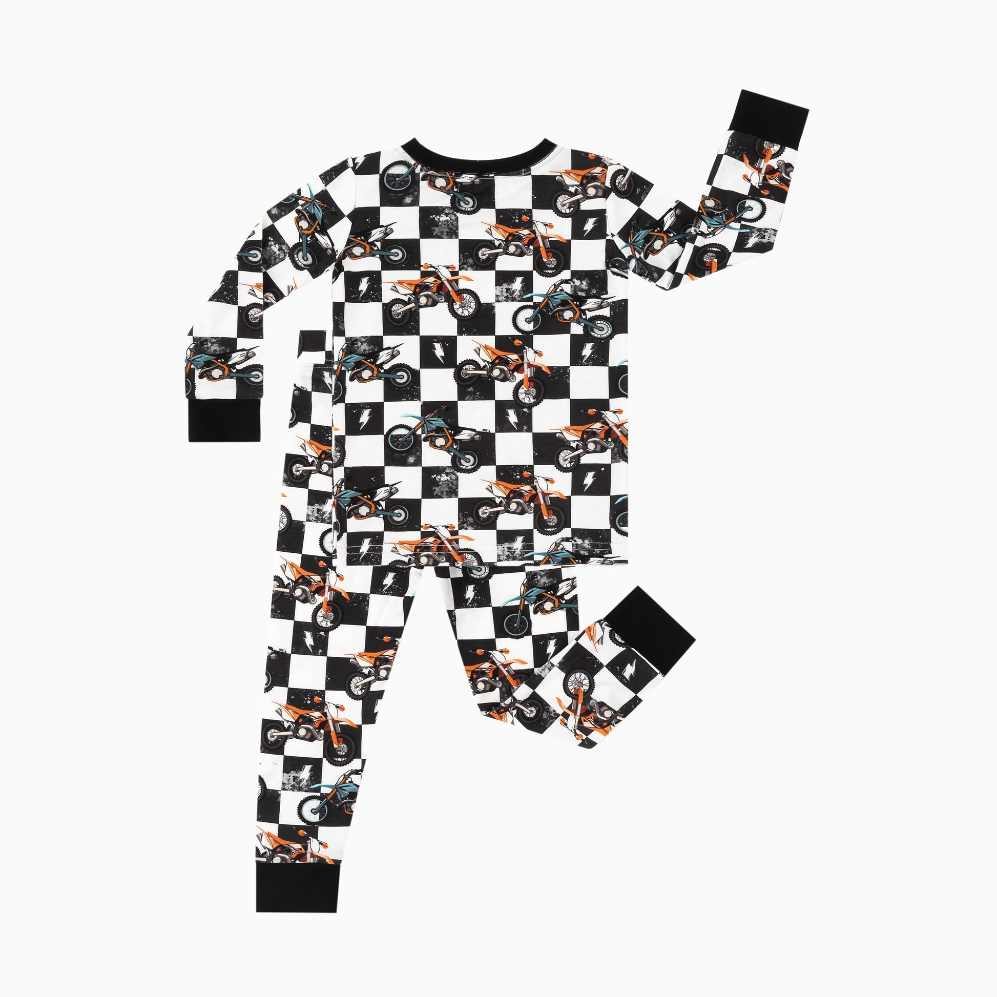 Black-White Checkered Motorcycle and Lightning Bamboo Two-Piece Pajama Set