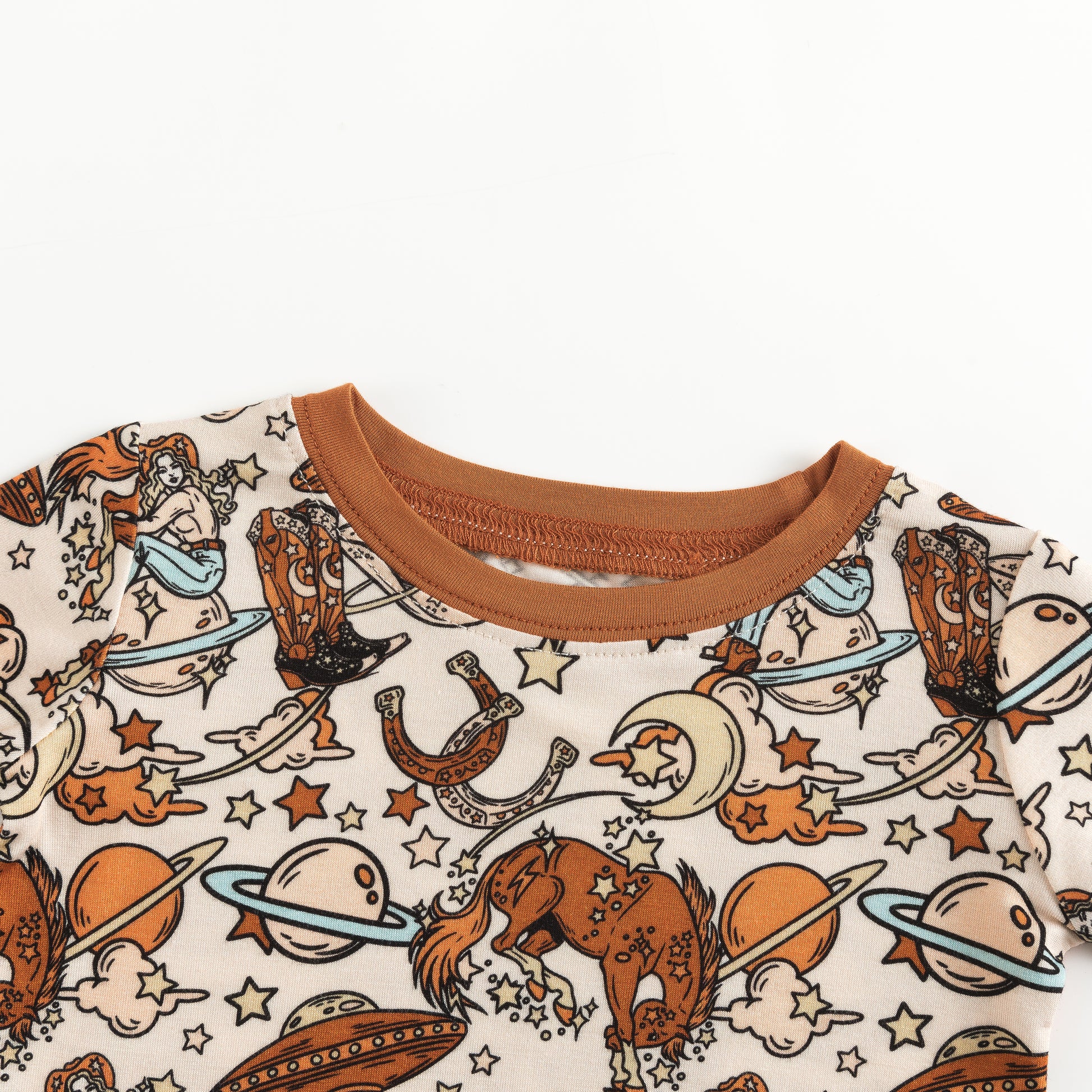 Brown Bull Head Print Kids Bamboo Two-Piece Pajama Set