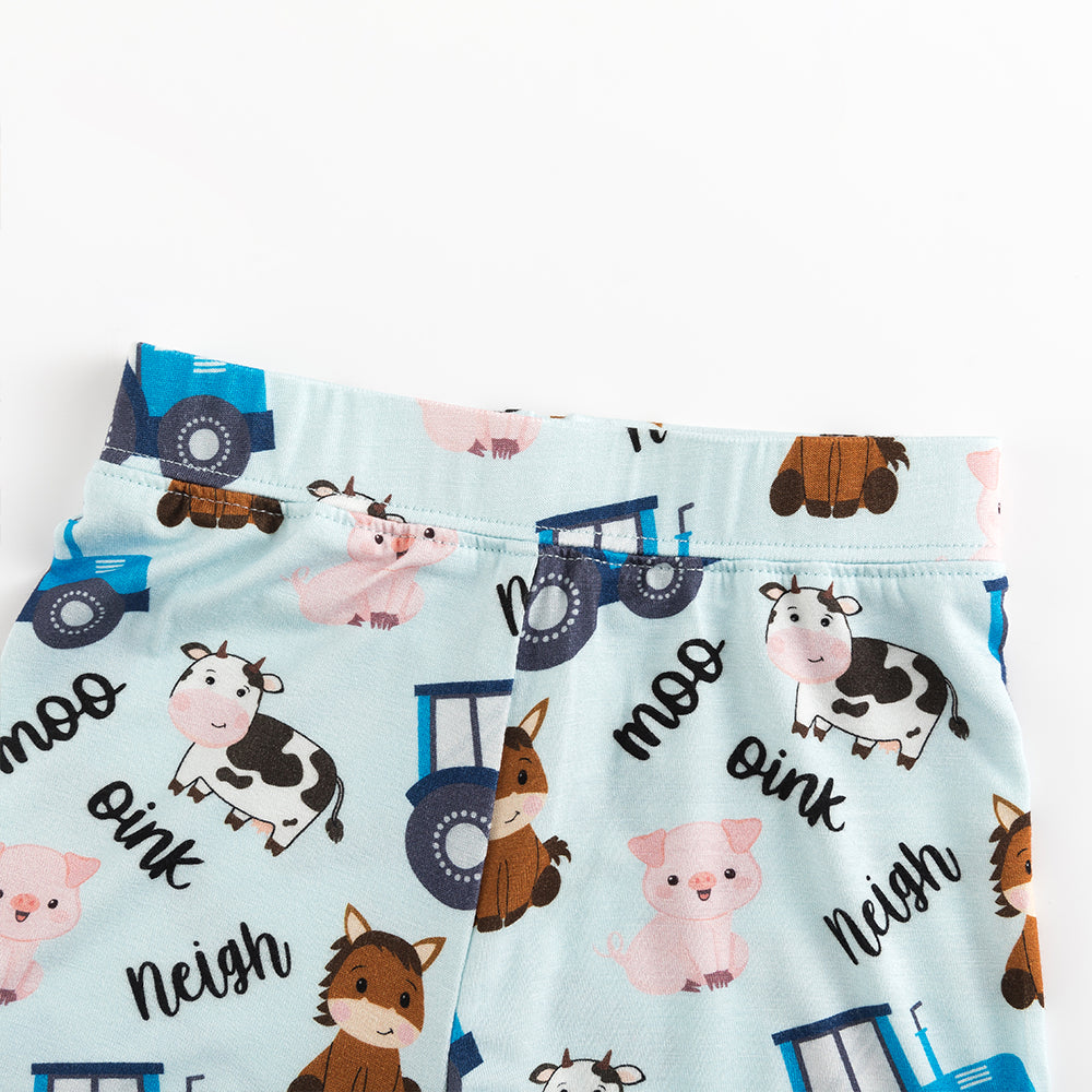 북유럽 드림 풀 그린 패턴 대나무 여름 파자마 반바지 세트