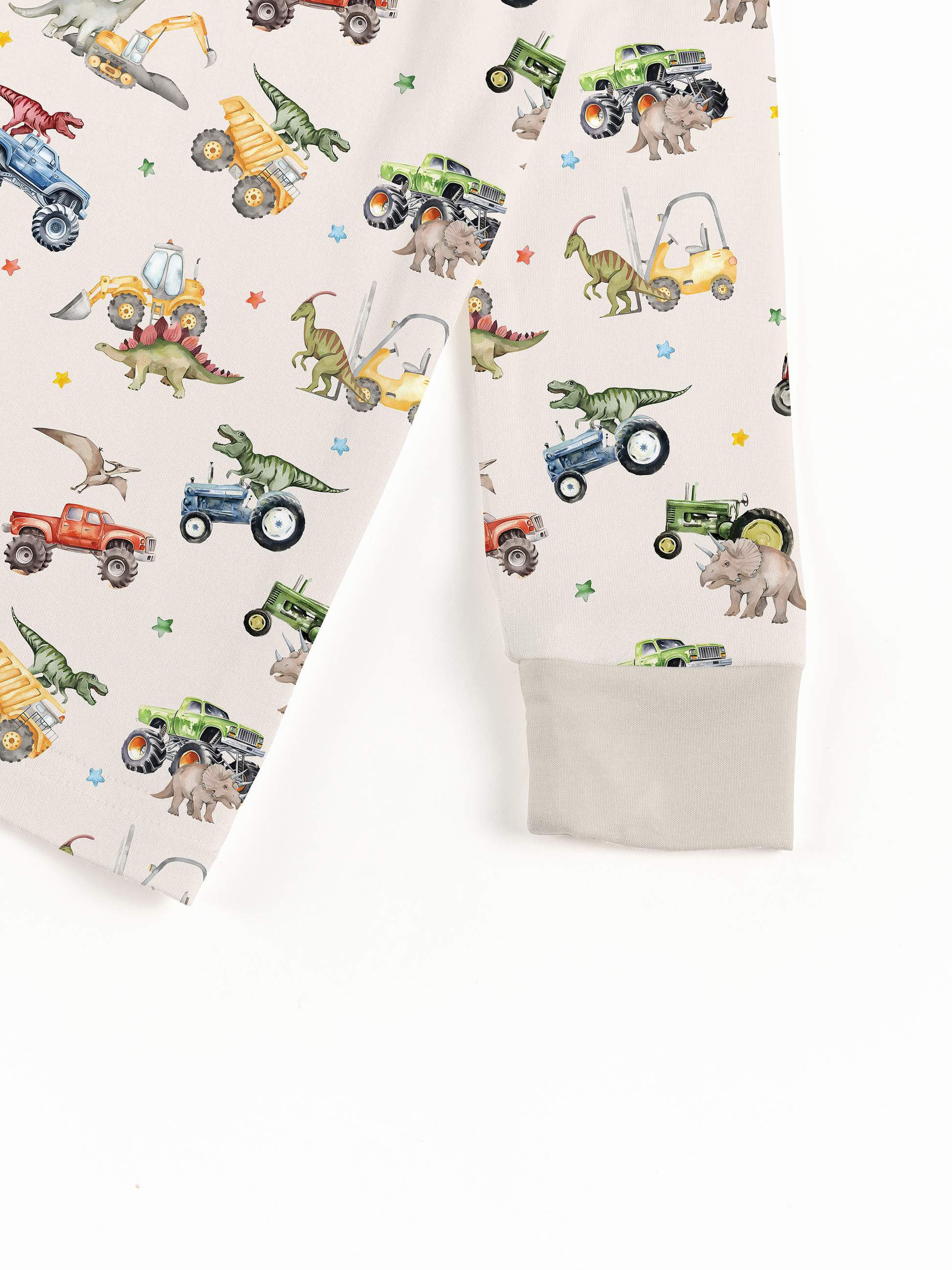 Dino Truck Adventure Ride and Stars Apricot Bamboo Two-Piece Pajama Set