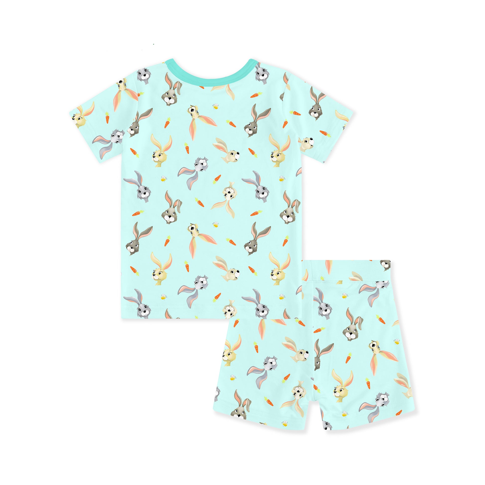 Easter Hoppy Bunny Carrot Parade Green Kids Bamboo Two-Piece Pajama Short Sleeve Set