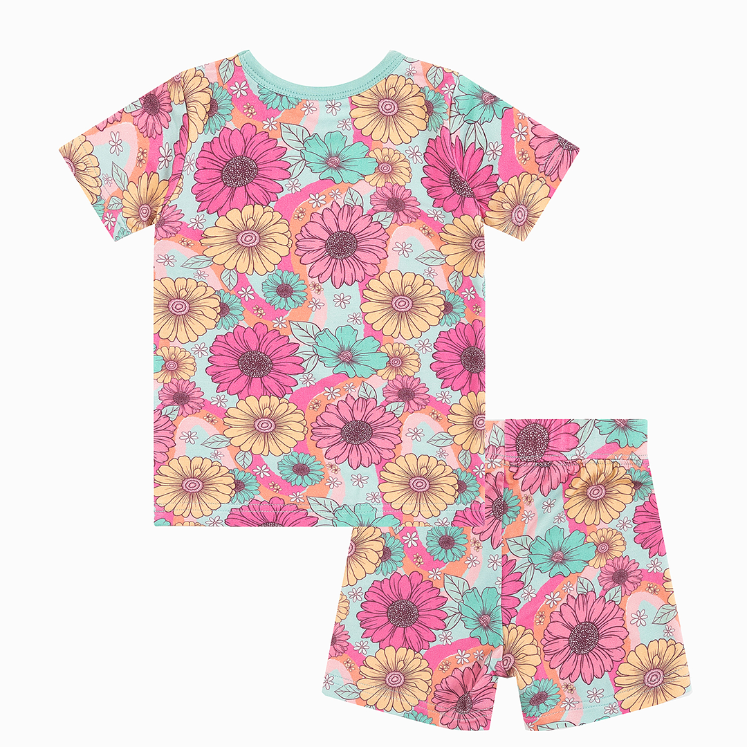 Flowers Colorful Bamboo Kid Short Two-Piece Pajama Set