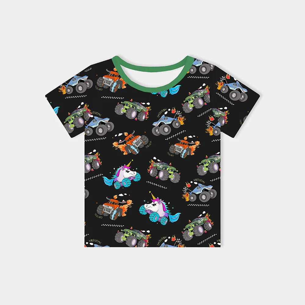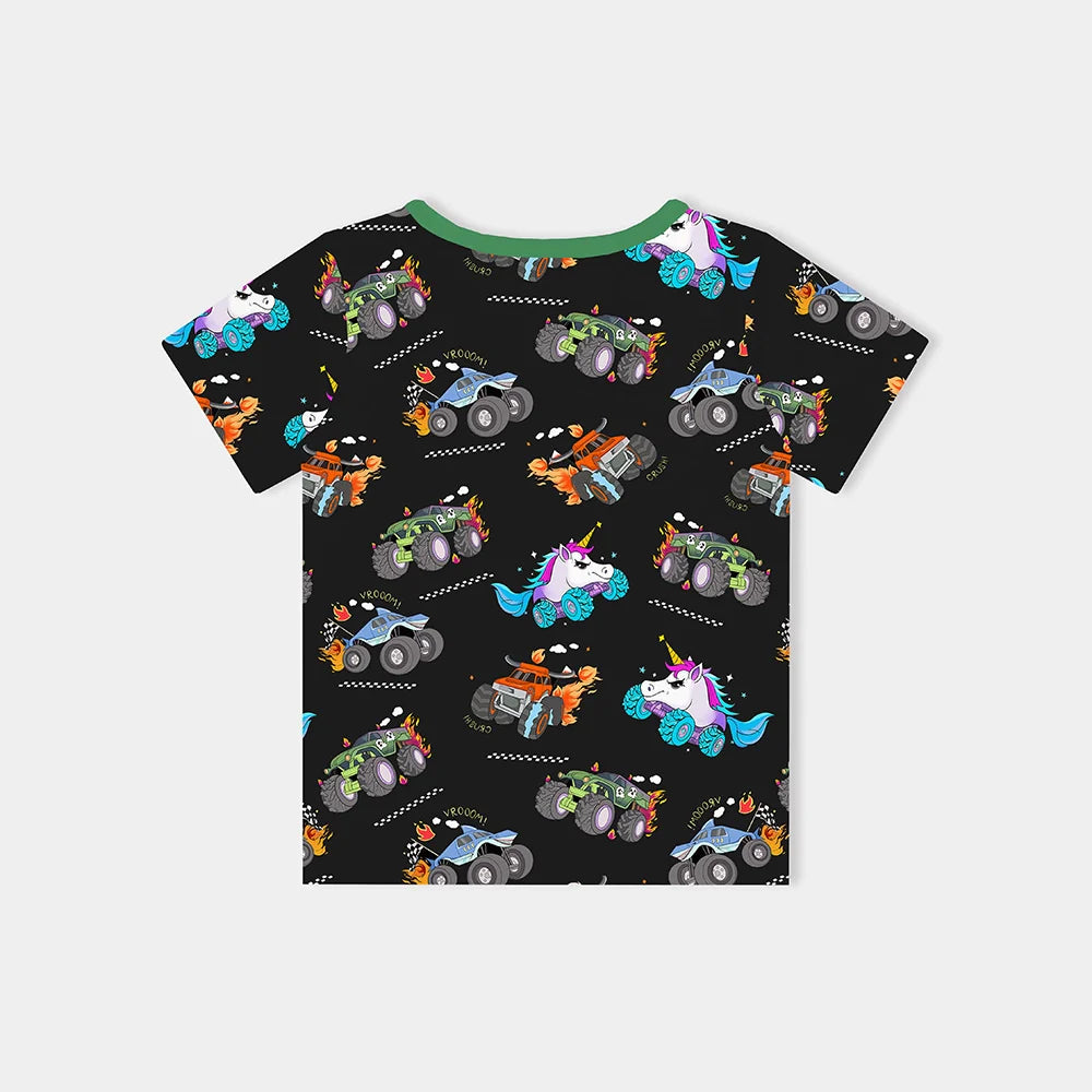 Monster Truck Black Green Kids Bamboo Short Top T-shirt