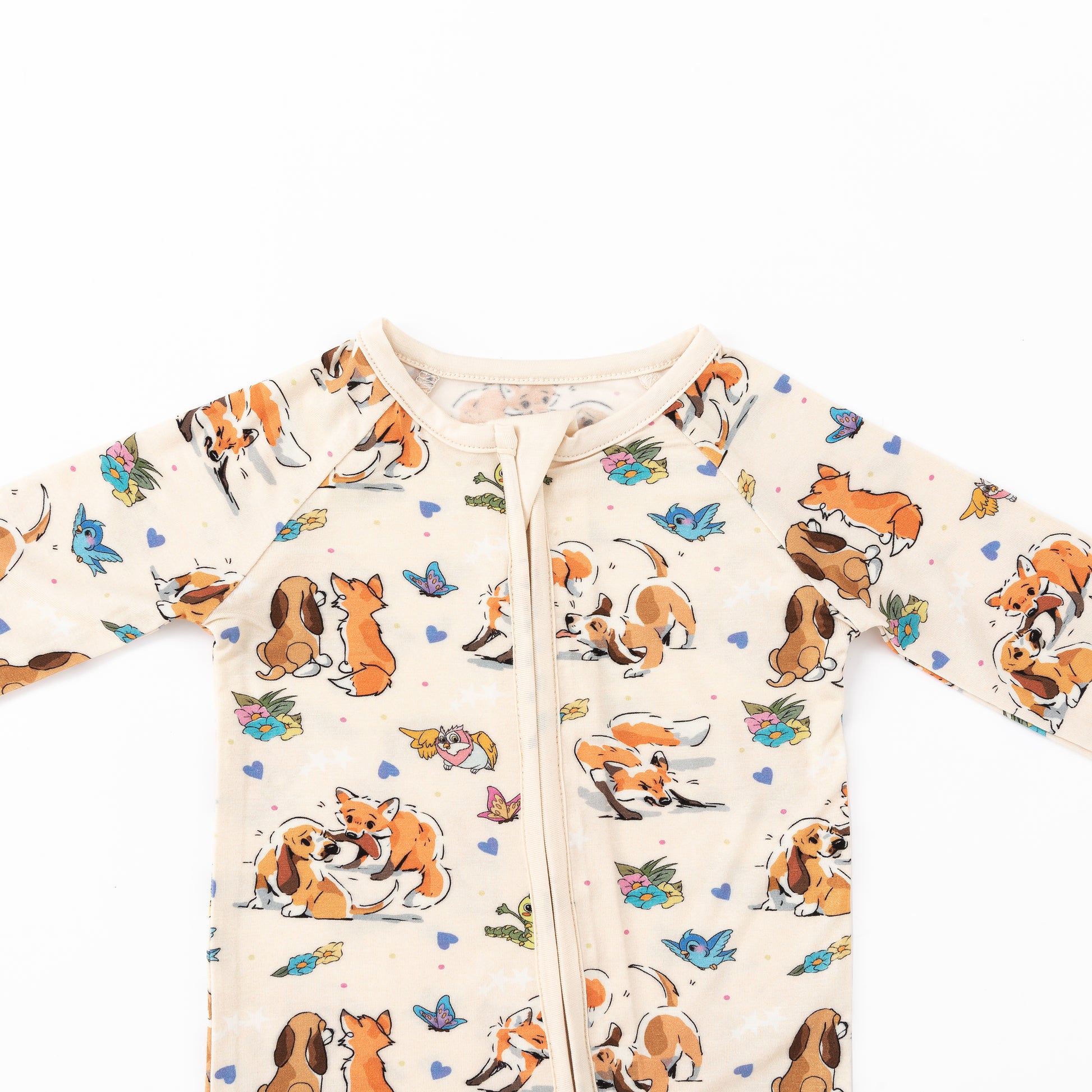 Playful Pups Foxs and Butterflies Bamboo Zipper Romper Pajamas