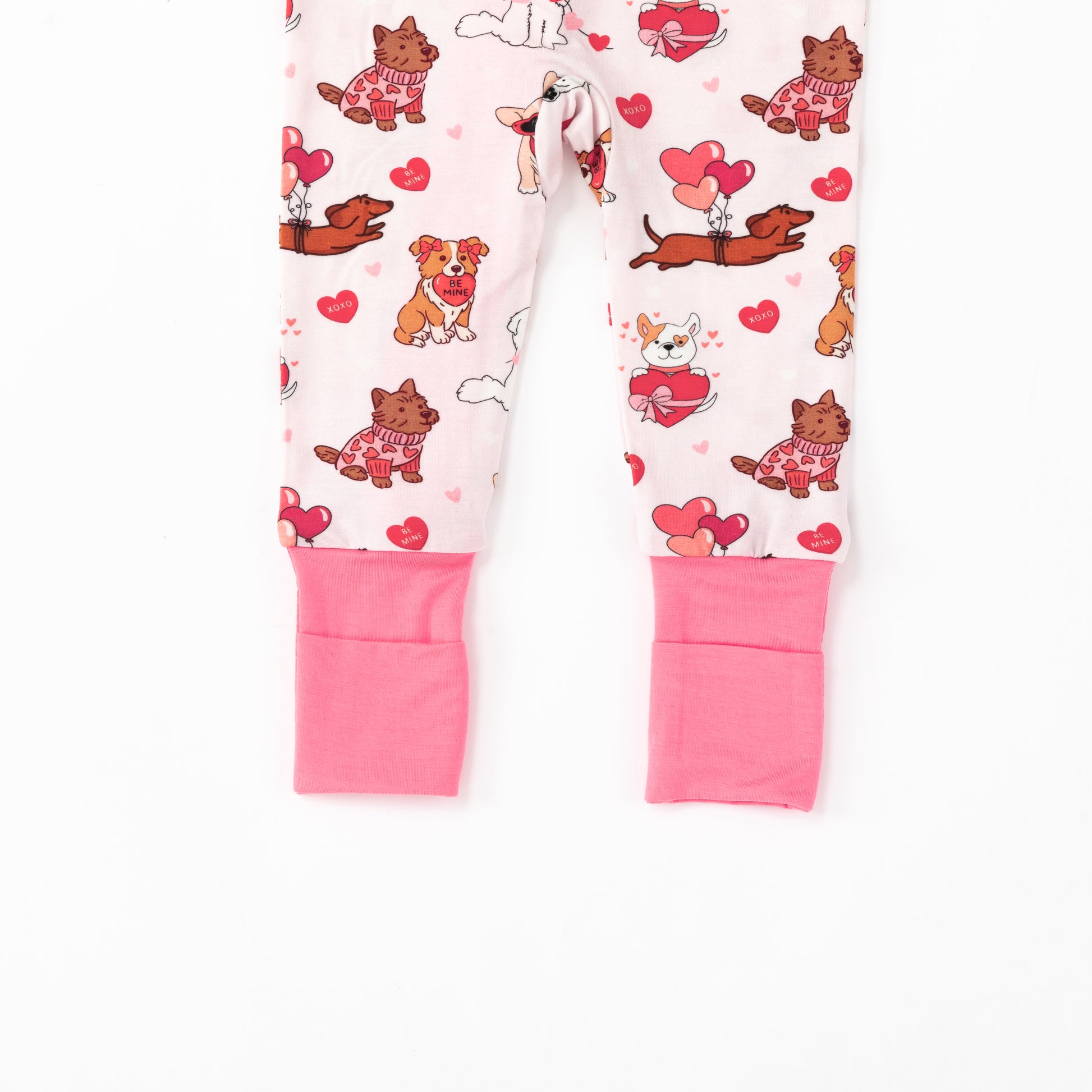 Valentine Heart Puppy Cuddle Crew Pink Bamboo Zipper Romper Pajamas