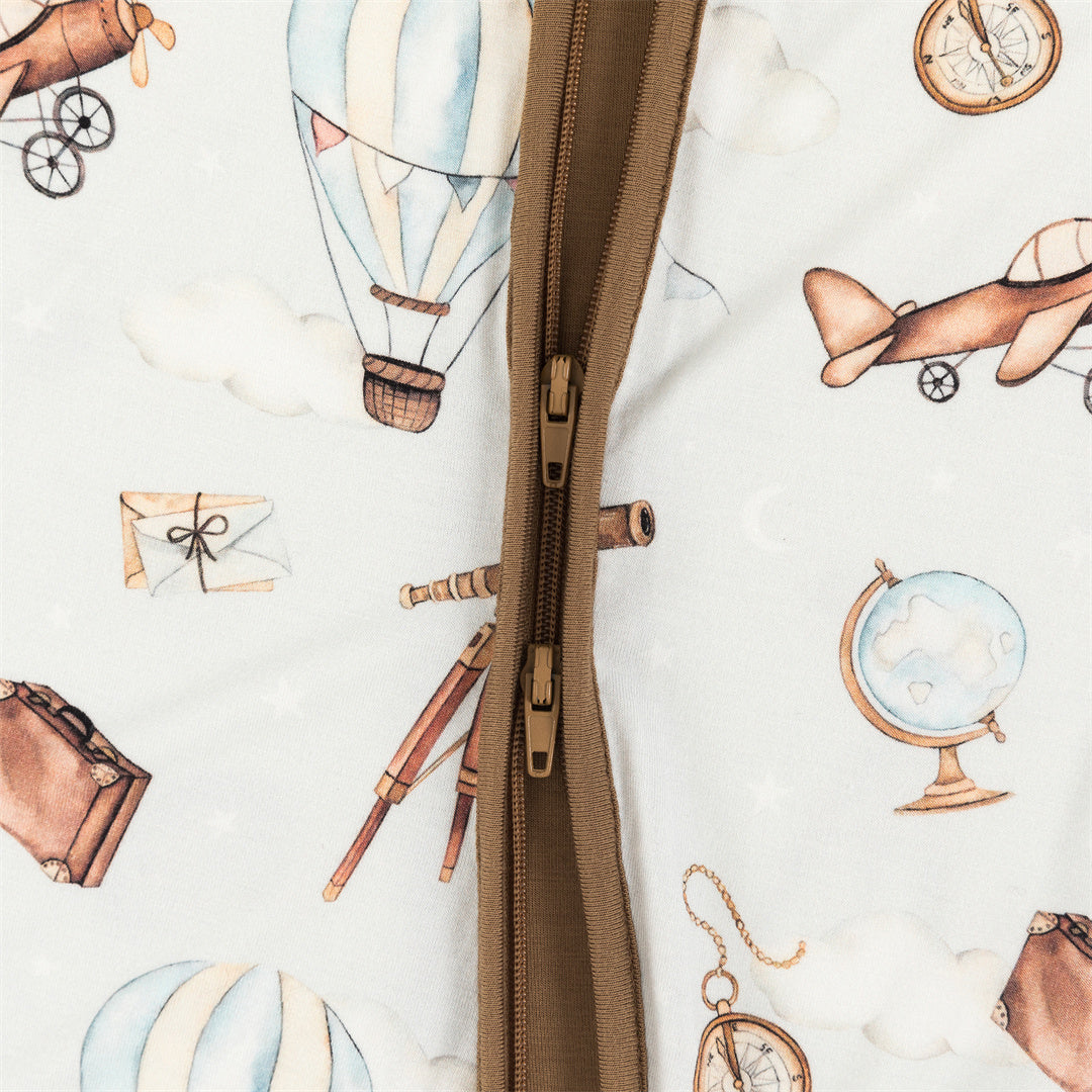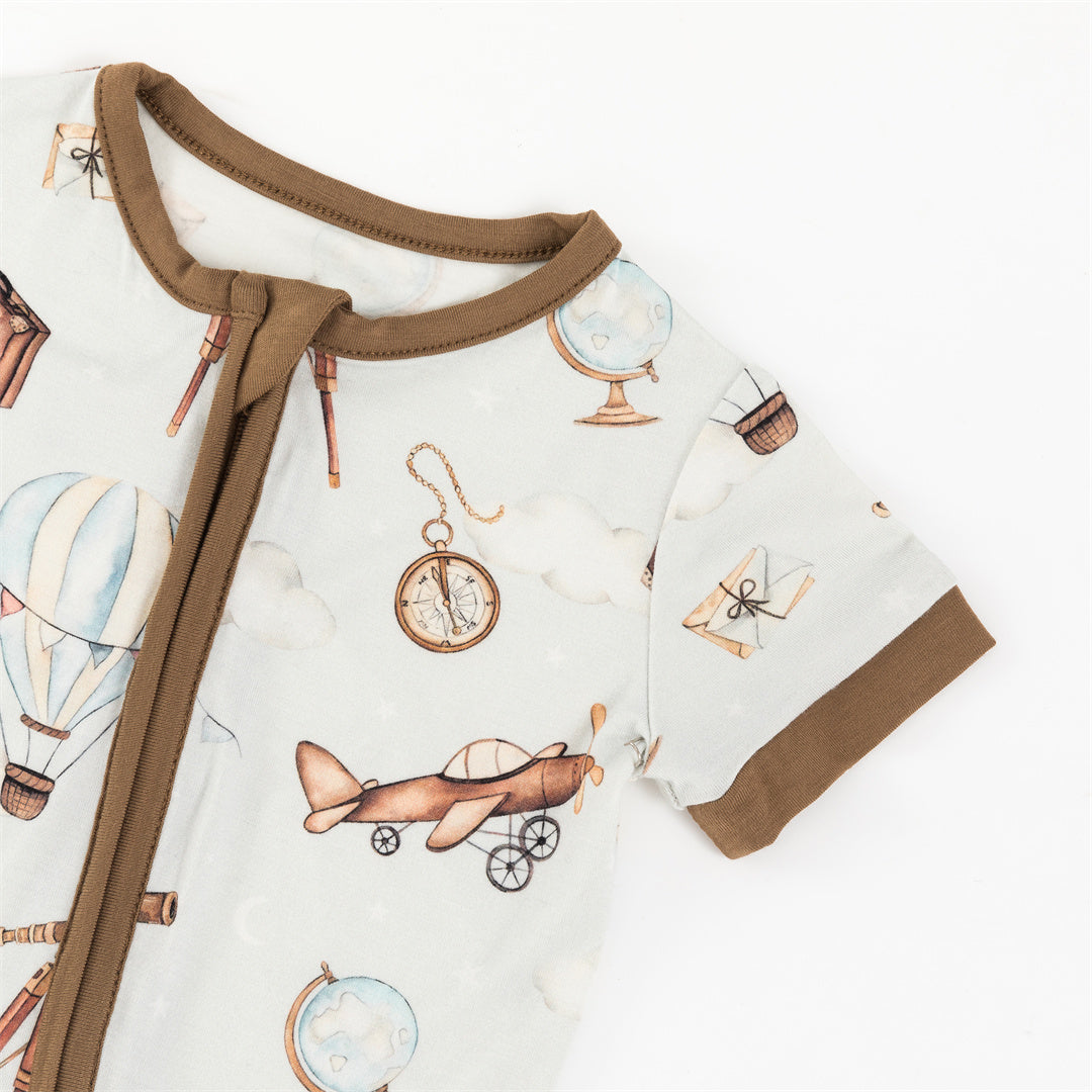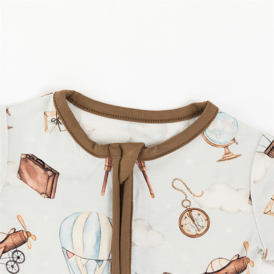 Vintage Airplane Telescope Bamboo Baby Shortie Romper