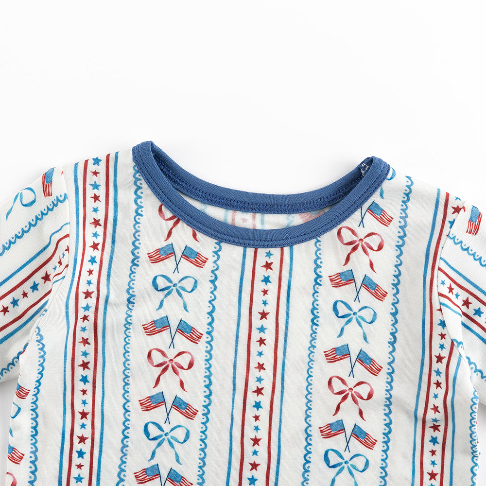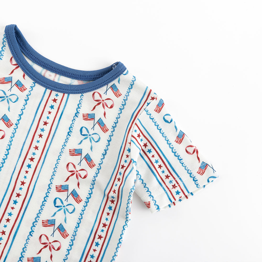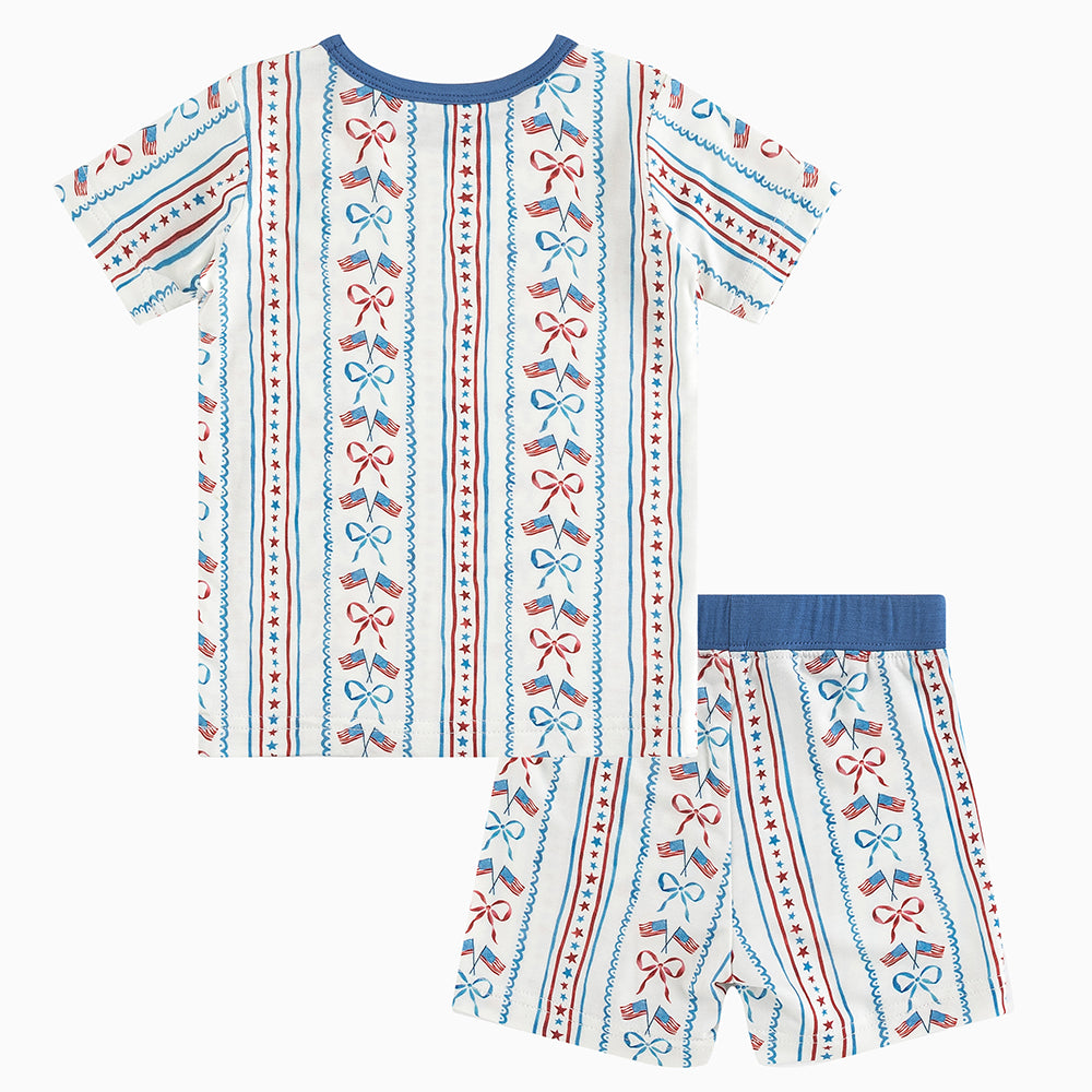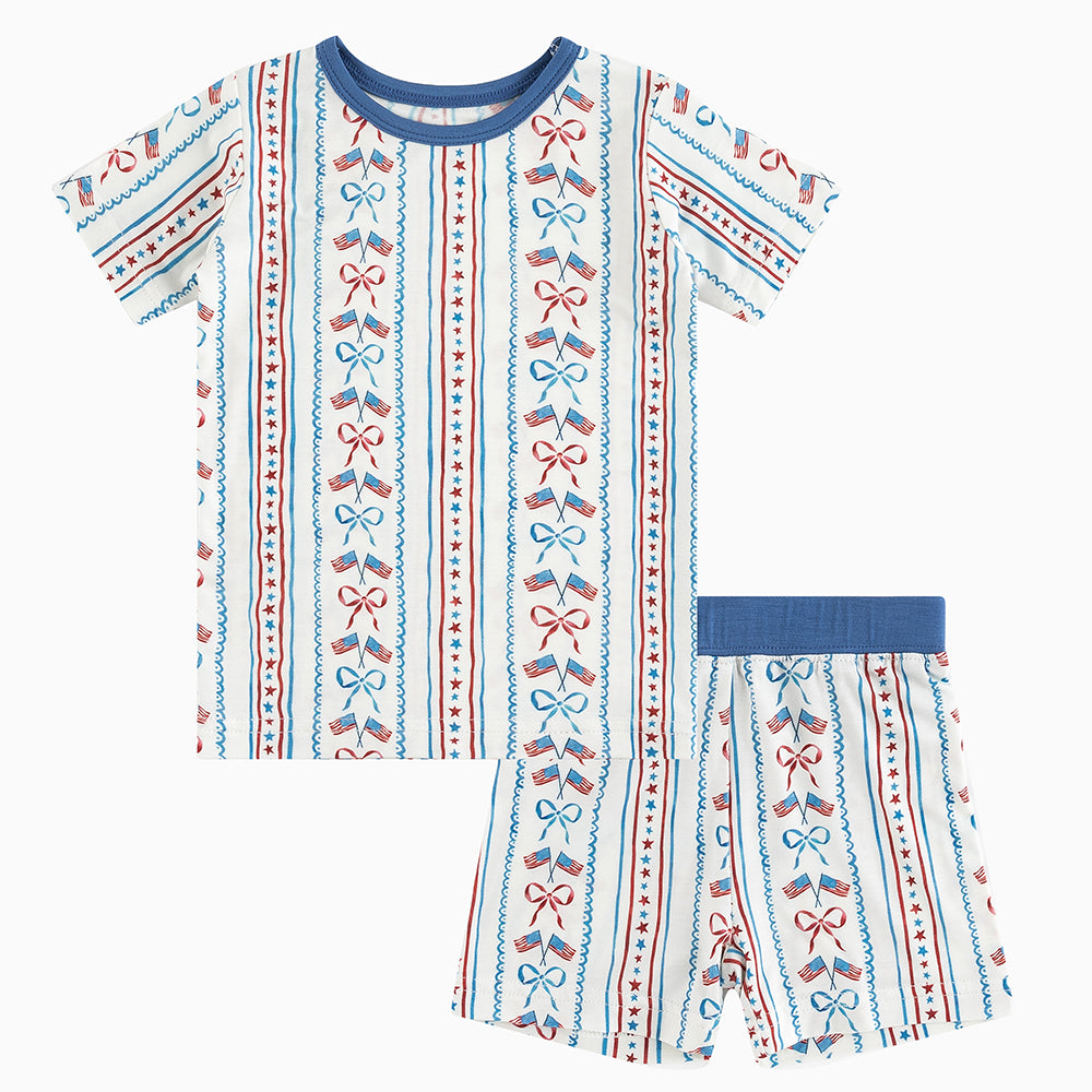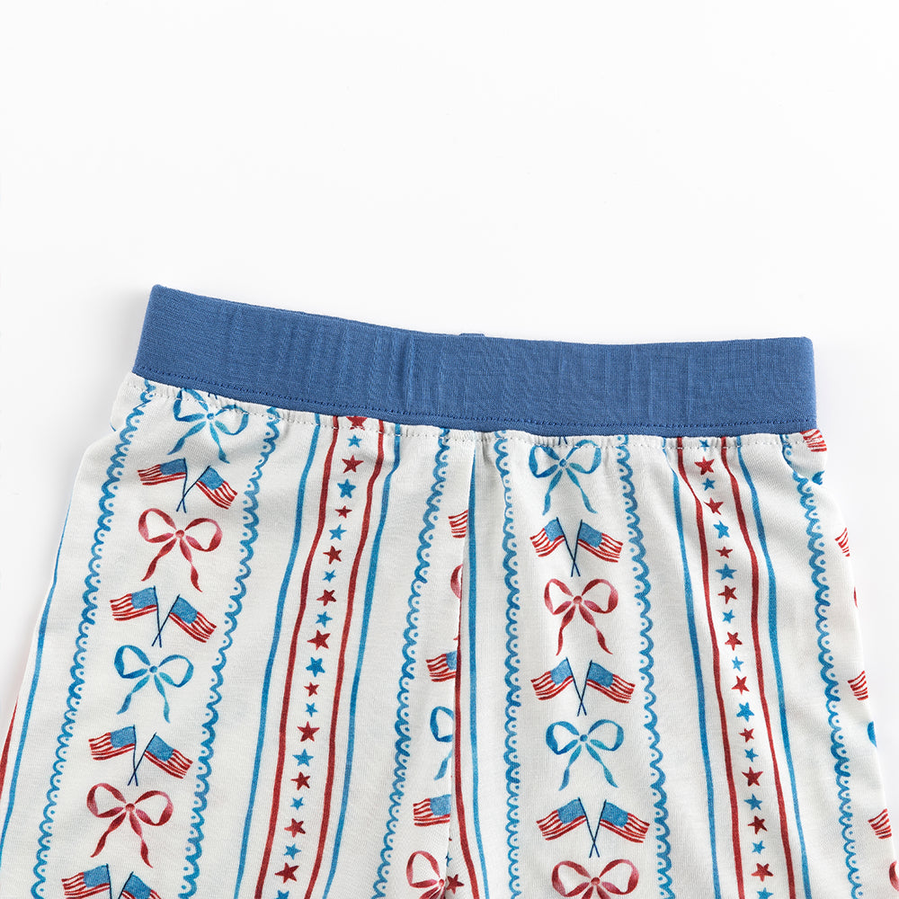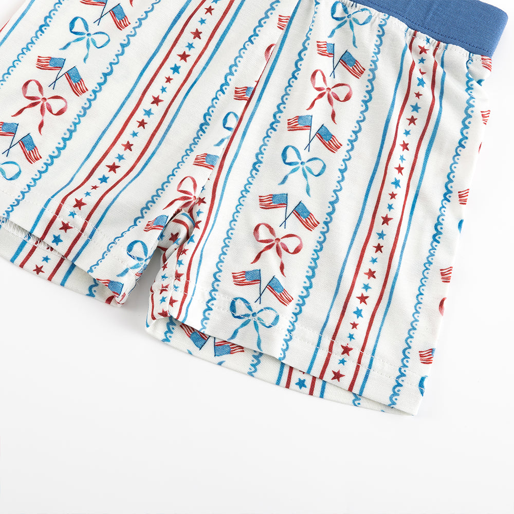 4th Of July Flag Bow Bamboo Shorts Kids Pajama Sets