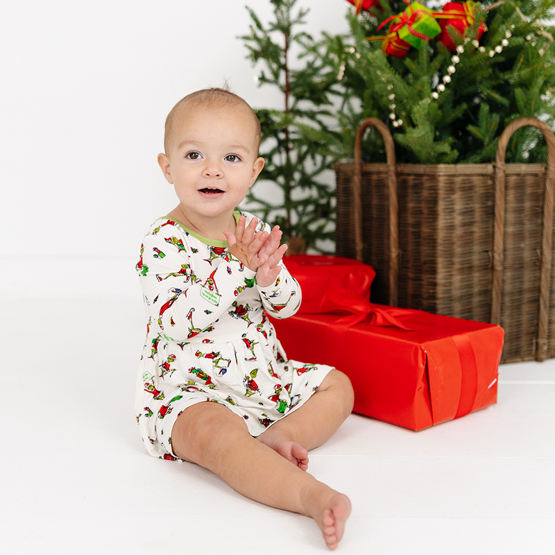 Christmas Green Gift Green Face Long Sleeve Twirl Dress With Bodysuit
