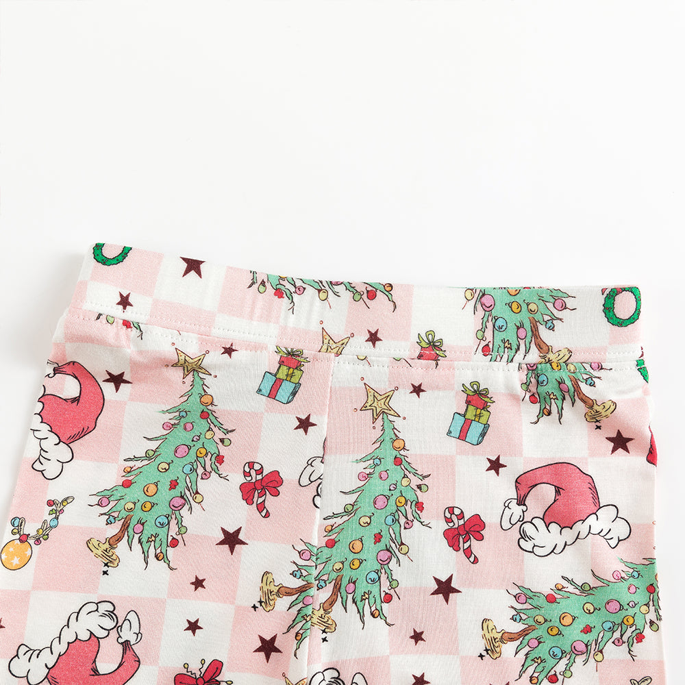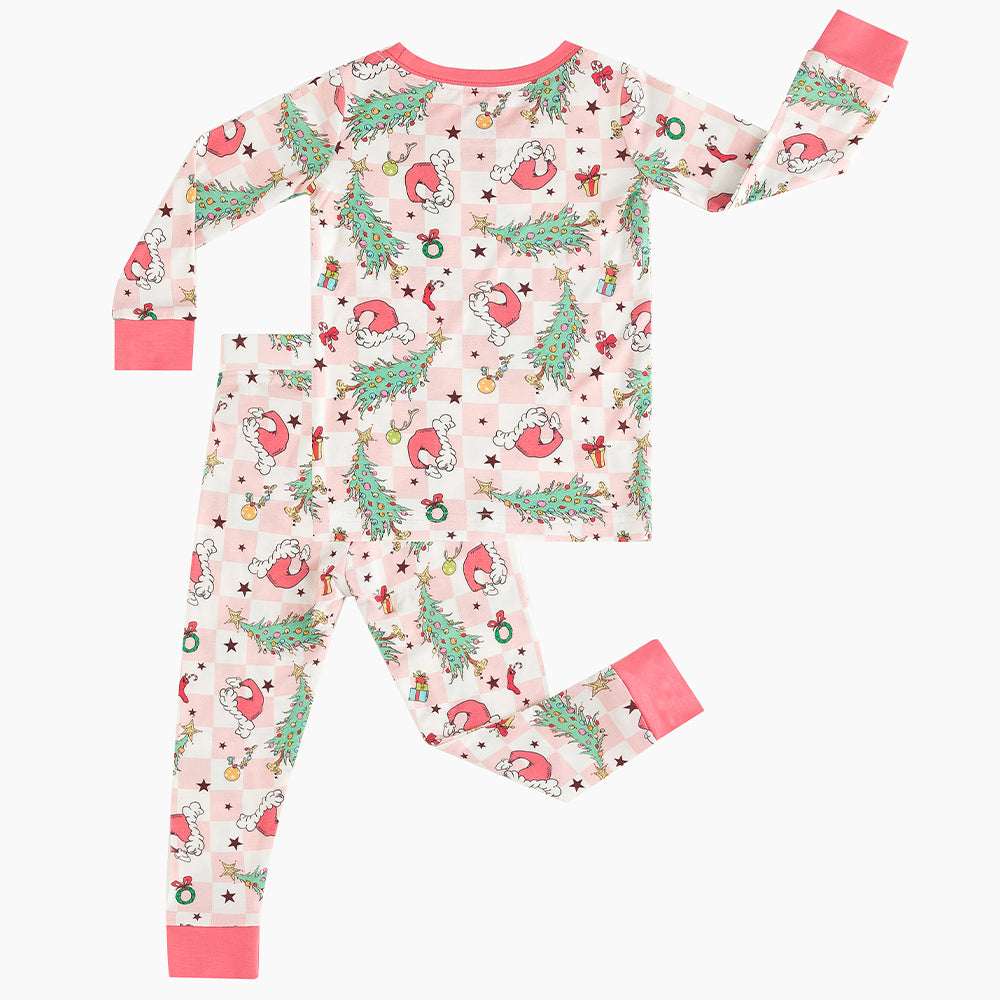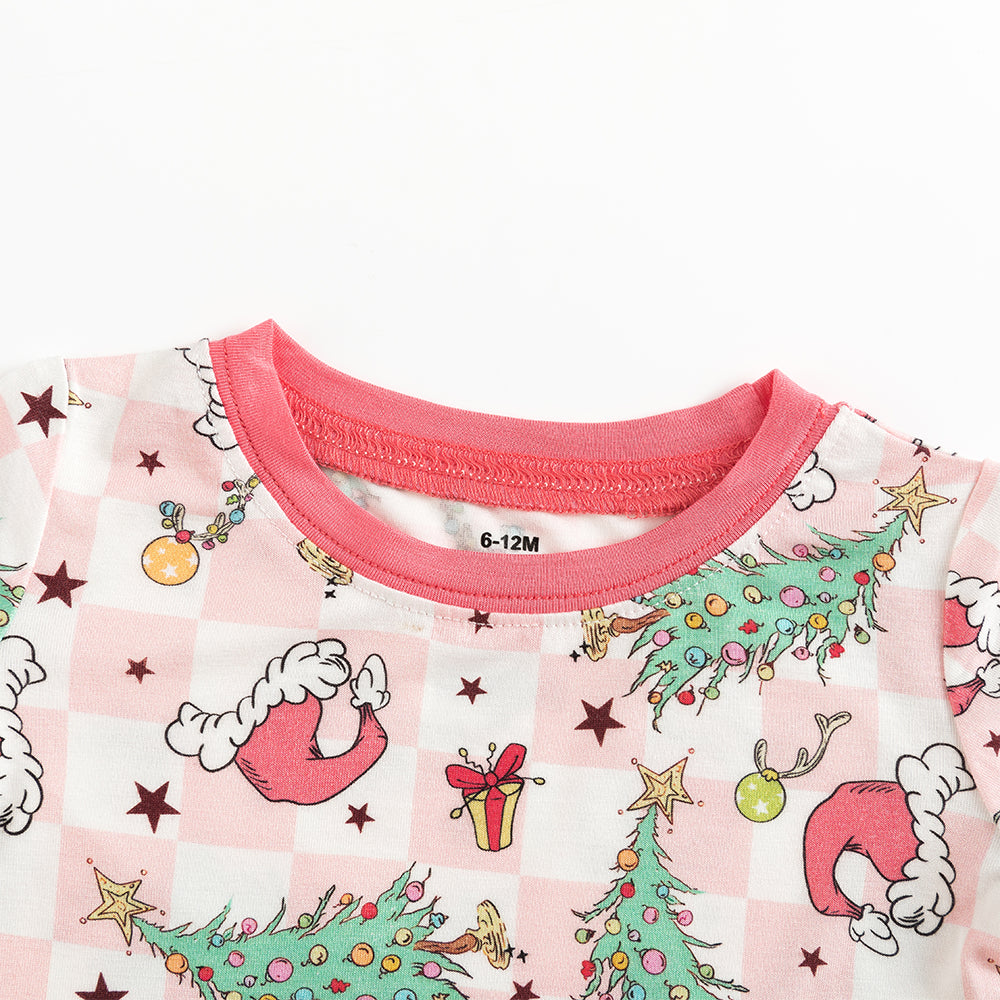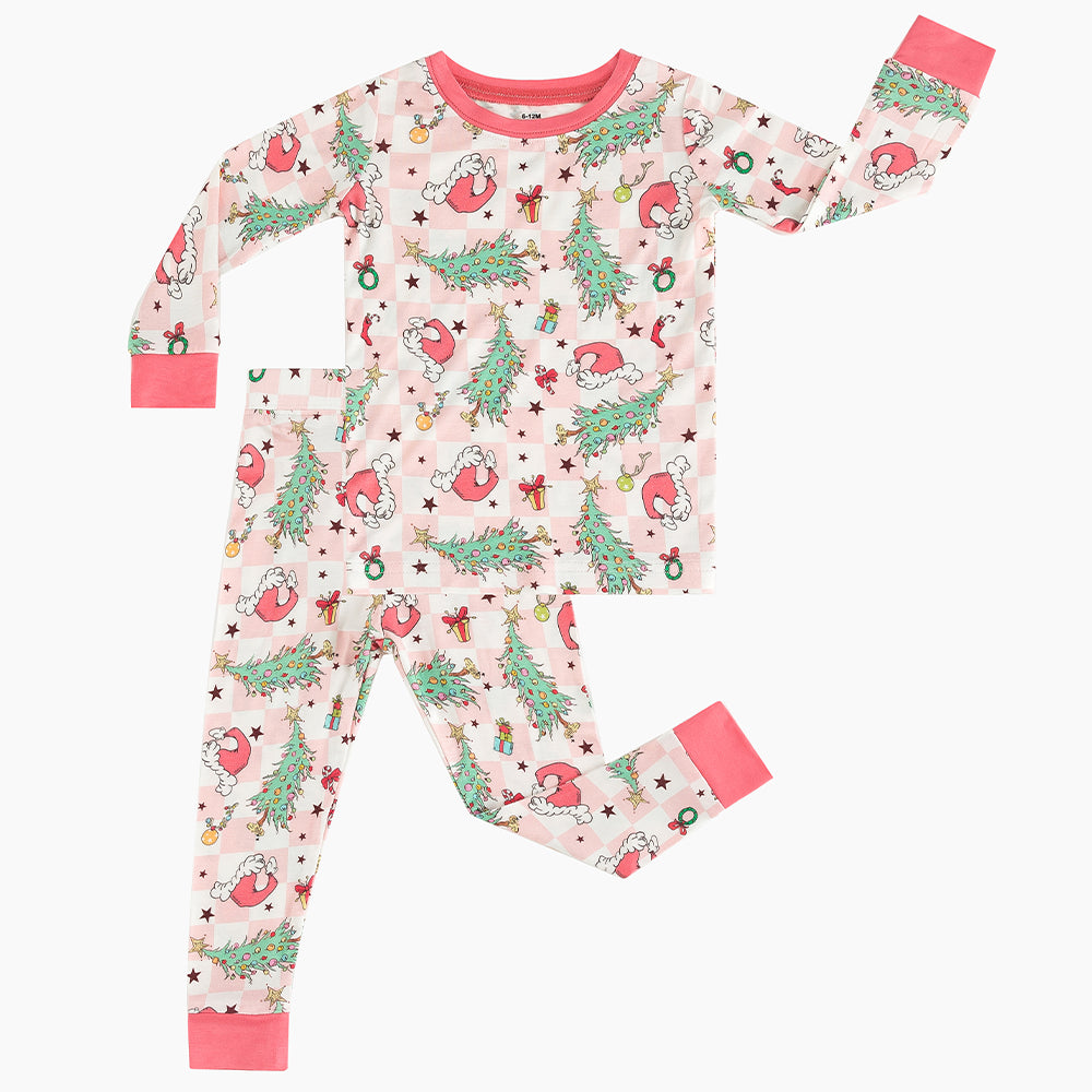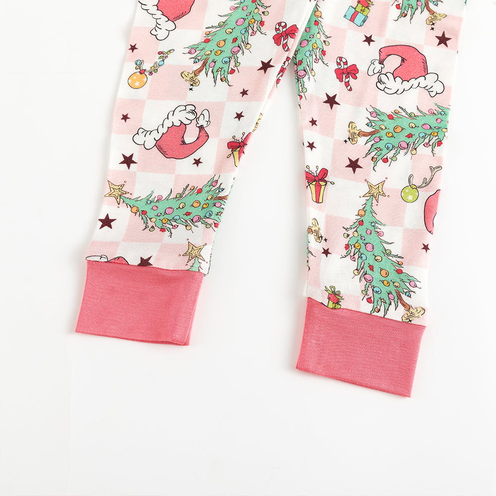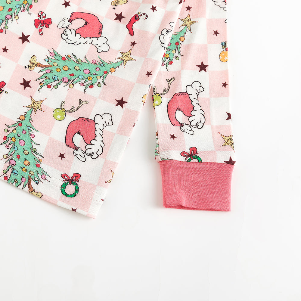 Christmas Pink Plaid Christmas Tree Bamboo Long Sleeve Pajama Set