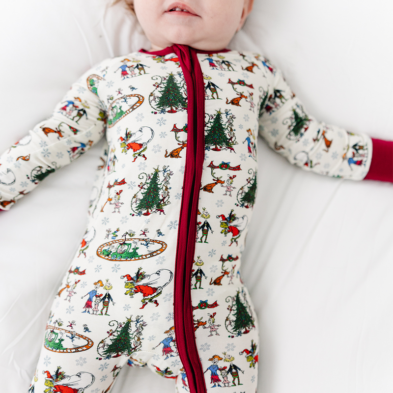 Christmas Snowflake Green Face Dog Baby Bamboo Zipper Romper Pajamas