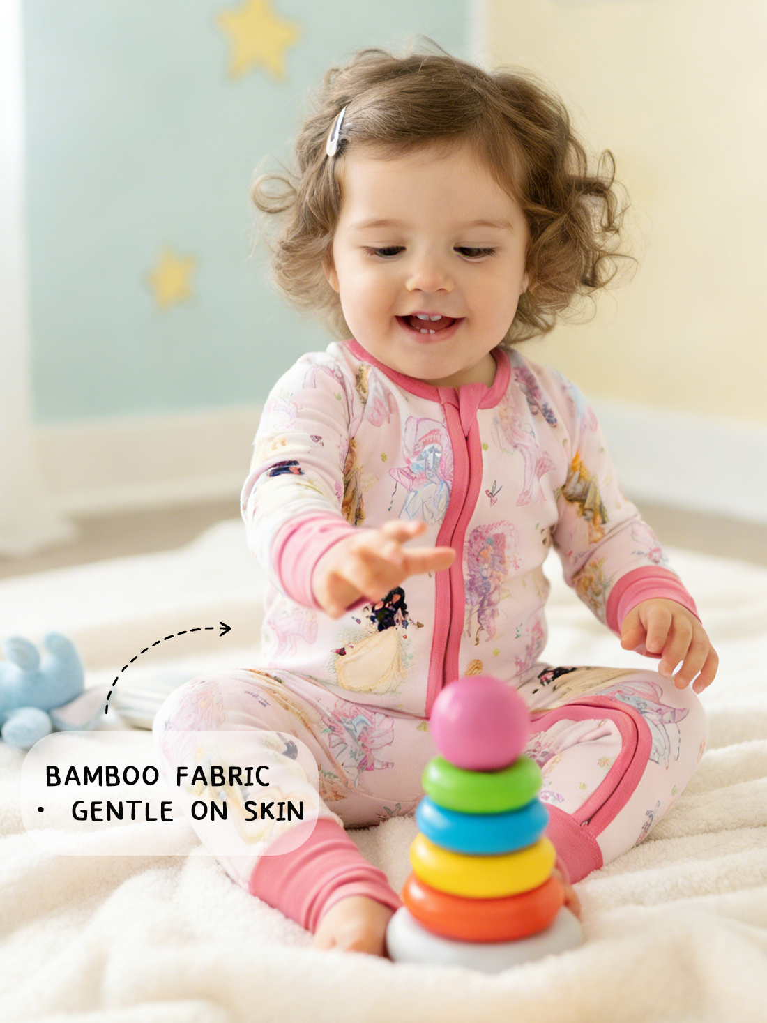 Fairytale Princess Magic Pink Bamboo Zipper Romper Pajamas
