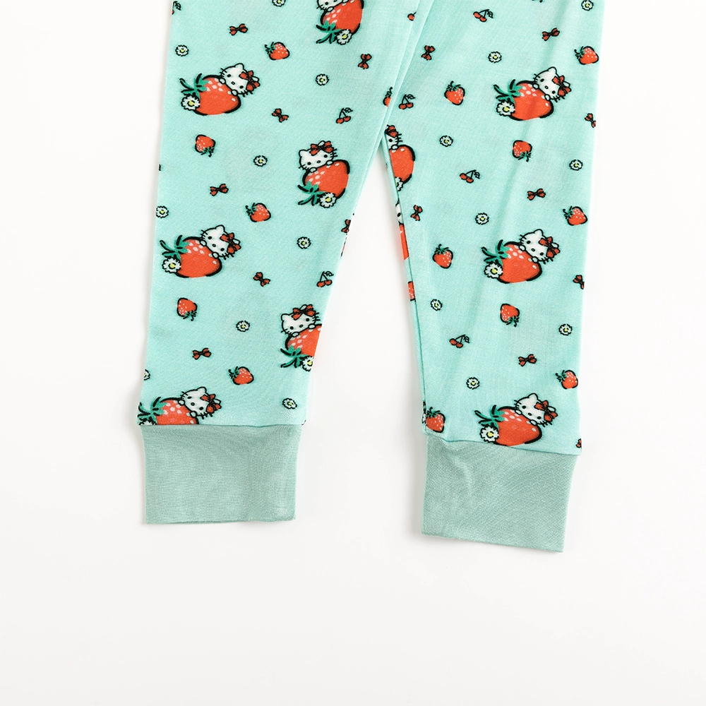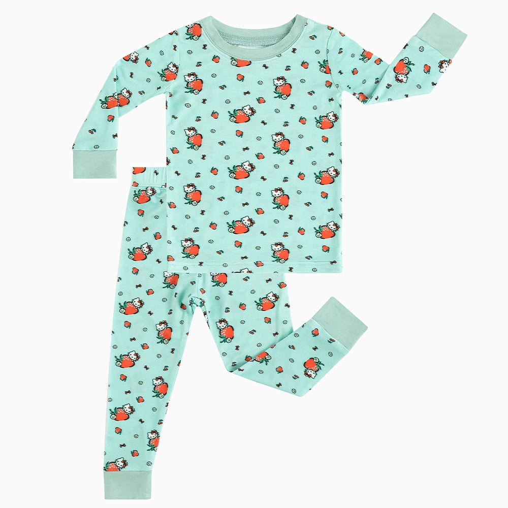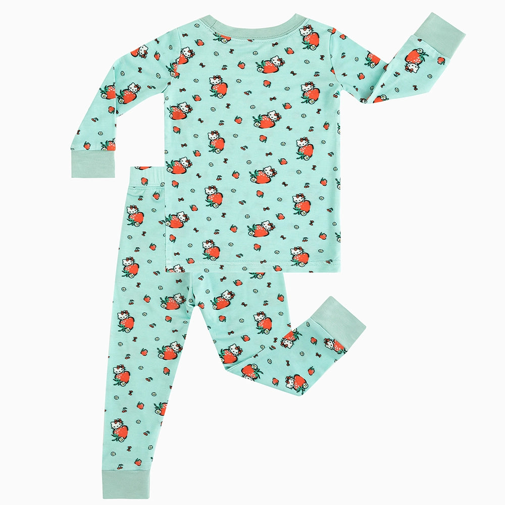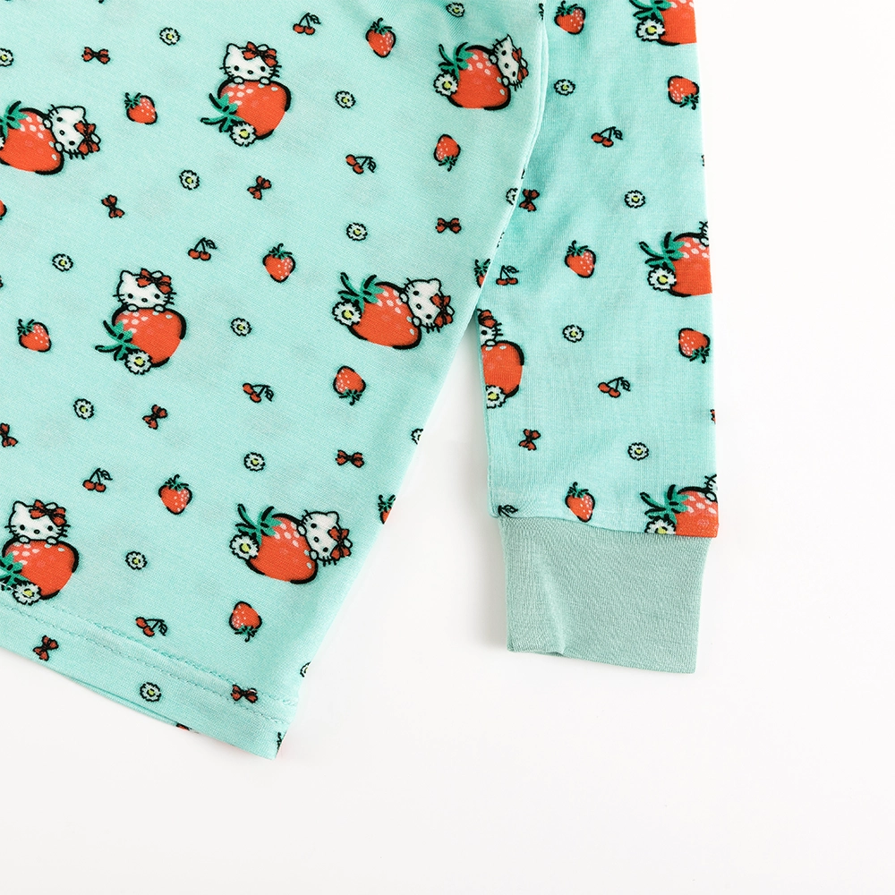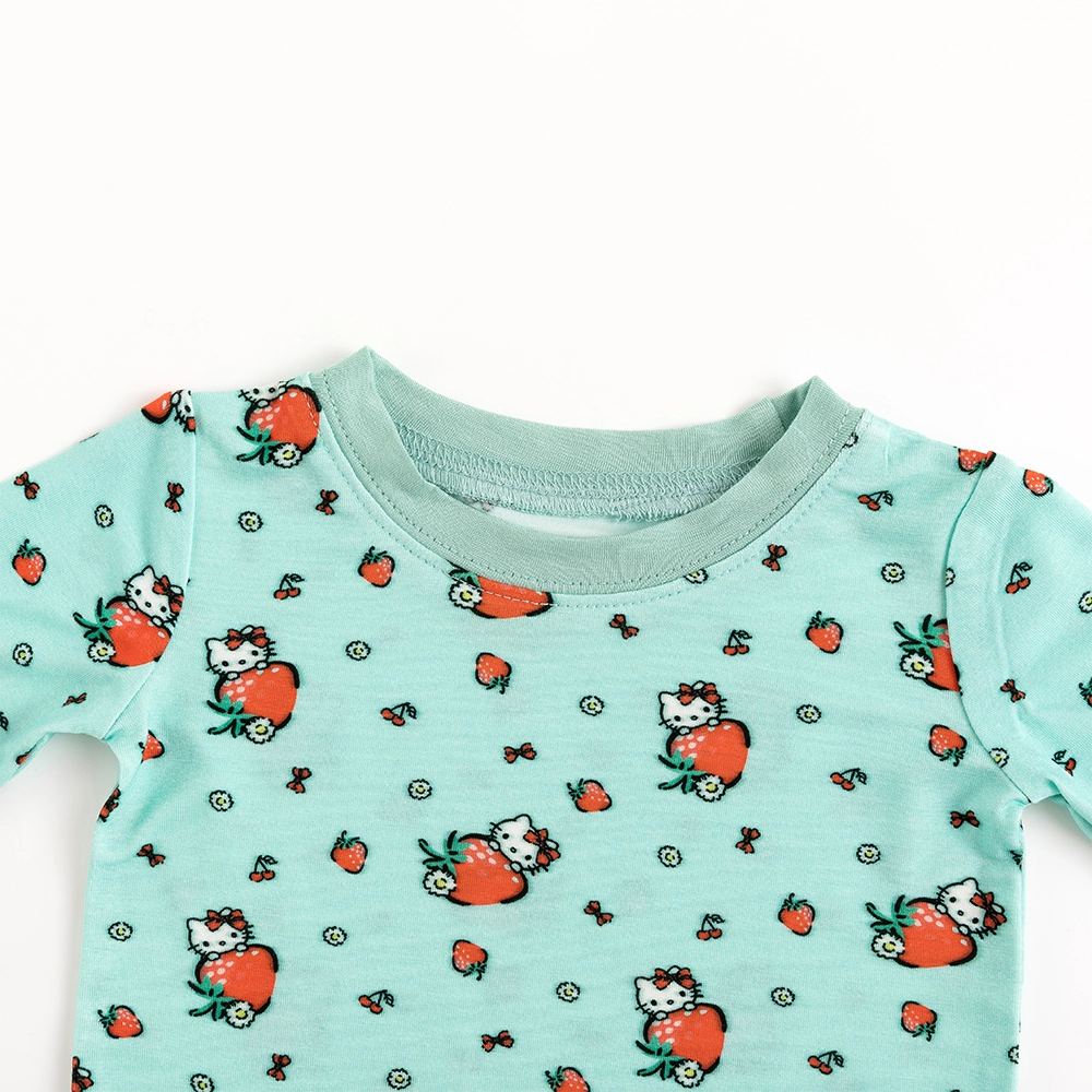 Green Strawberry Cat Bamboo Long Sleeve Pajama Set