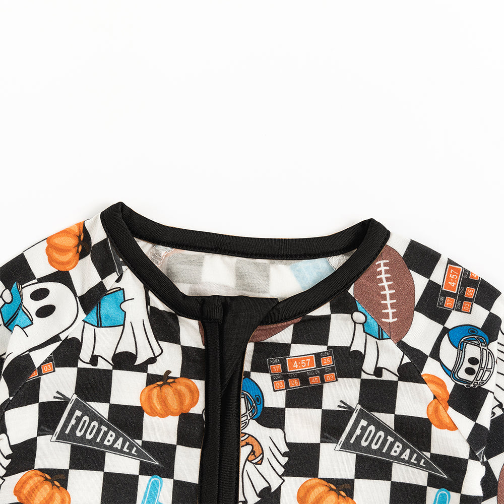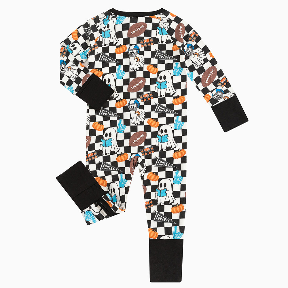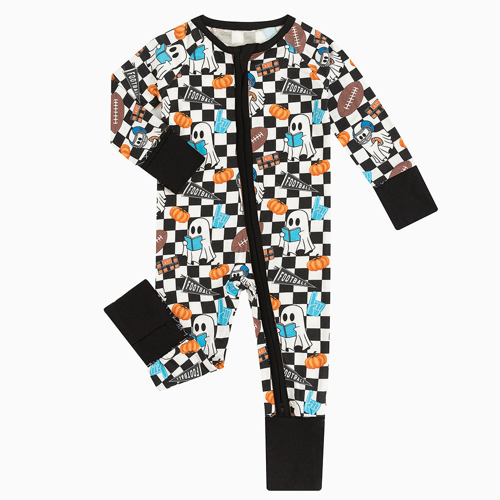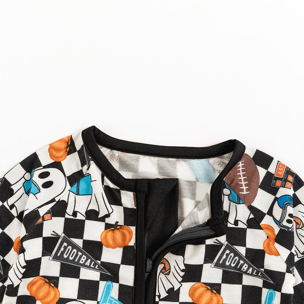 Halloween Ghost Football Baby Bamboo Zipper Romper Pajamas