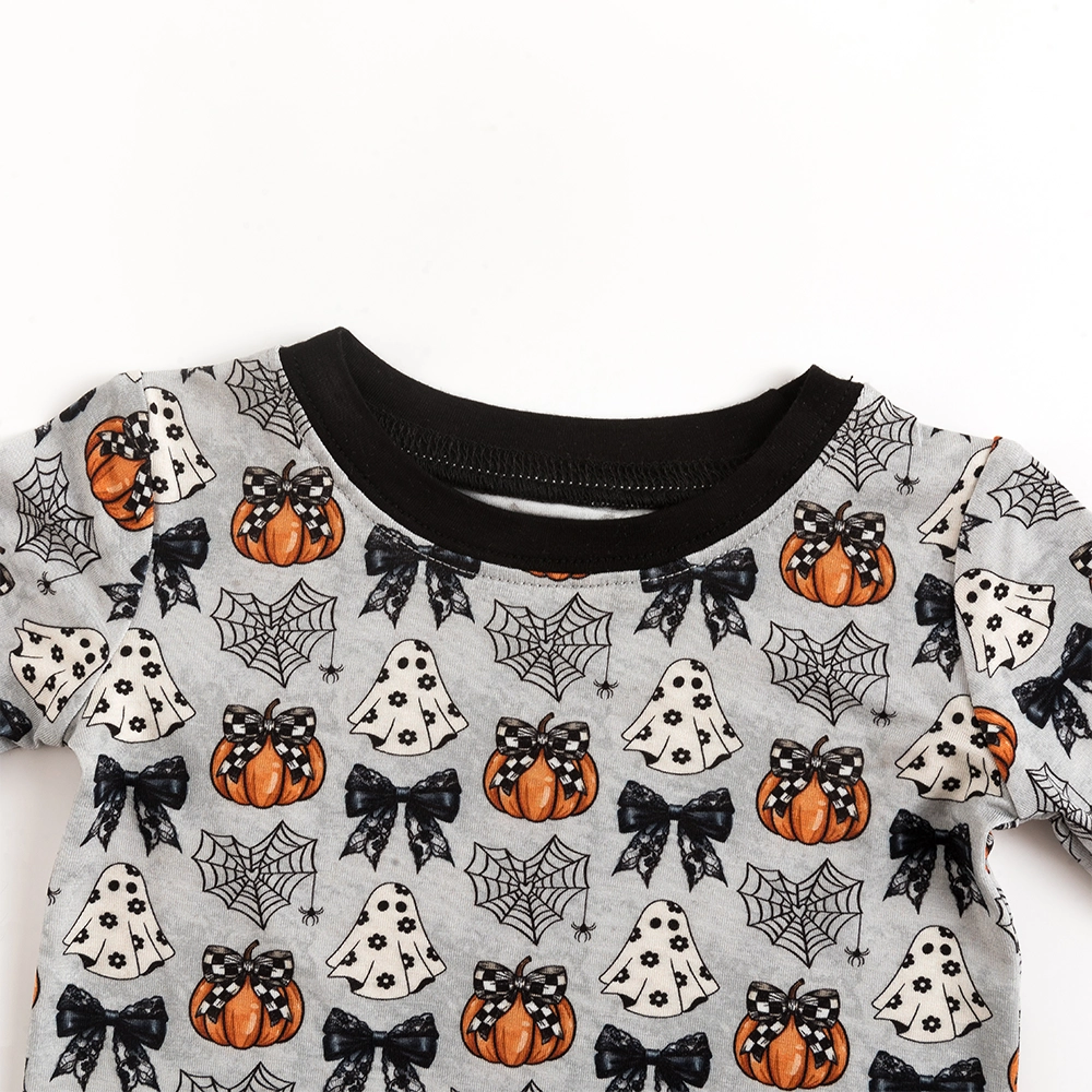 Halloween Pumpkin Bow Bamboo Long Sleeve Pajama Set