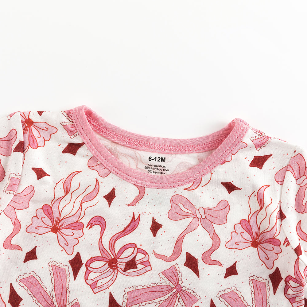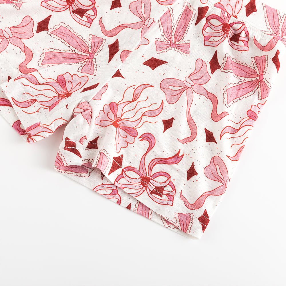 Light Pink Bow Bamboo Shorts Kids Pajama Sets