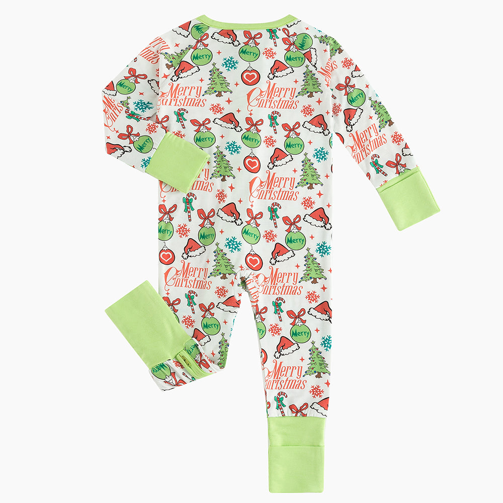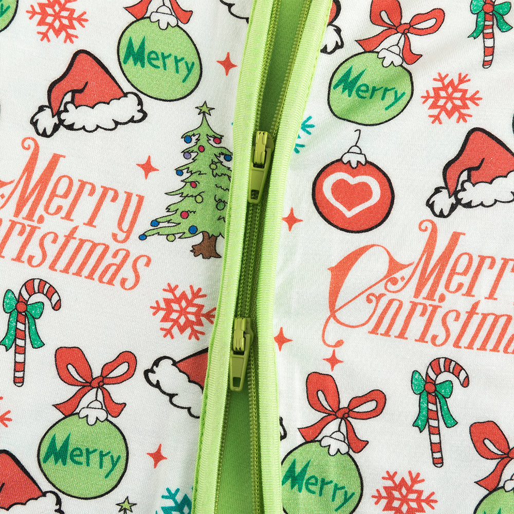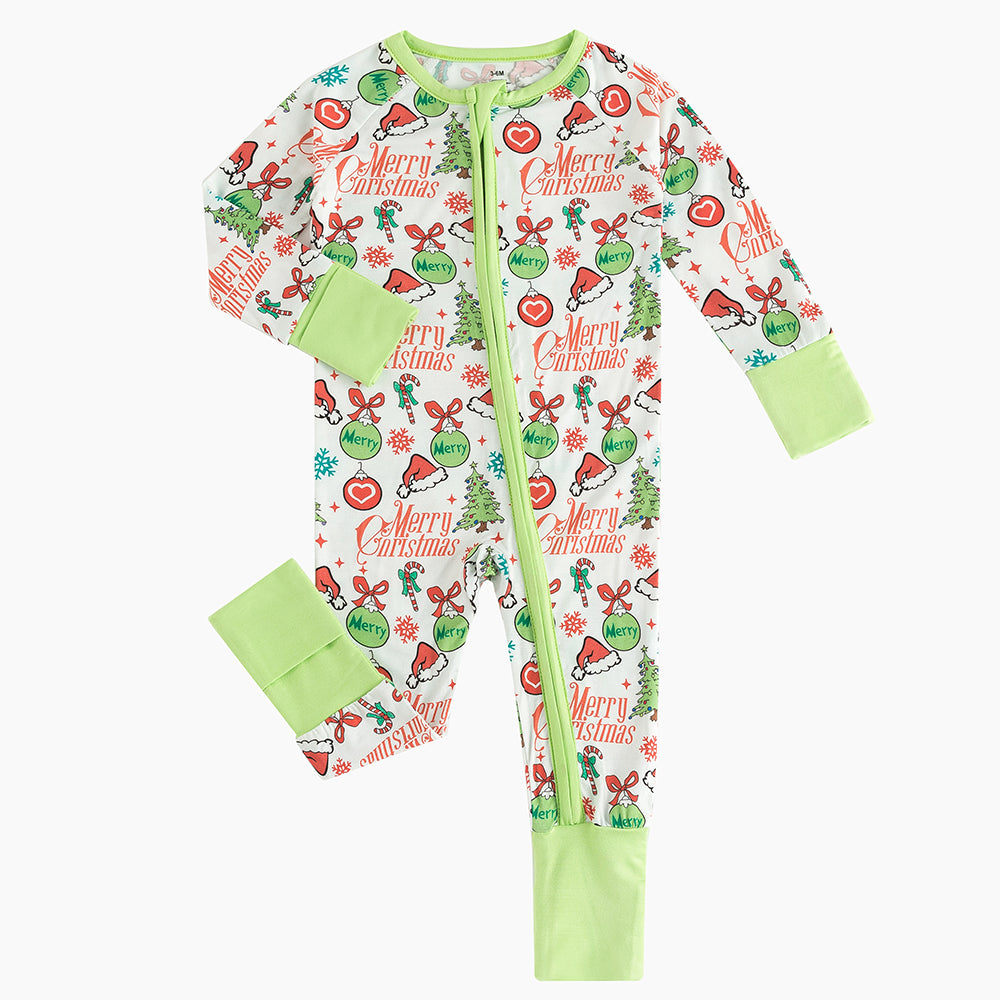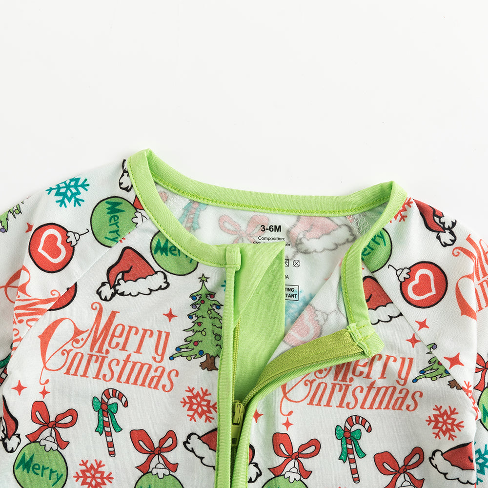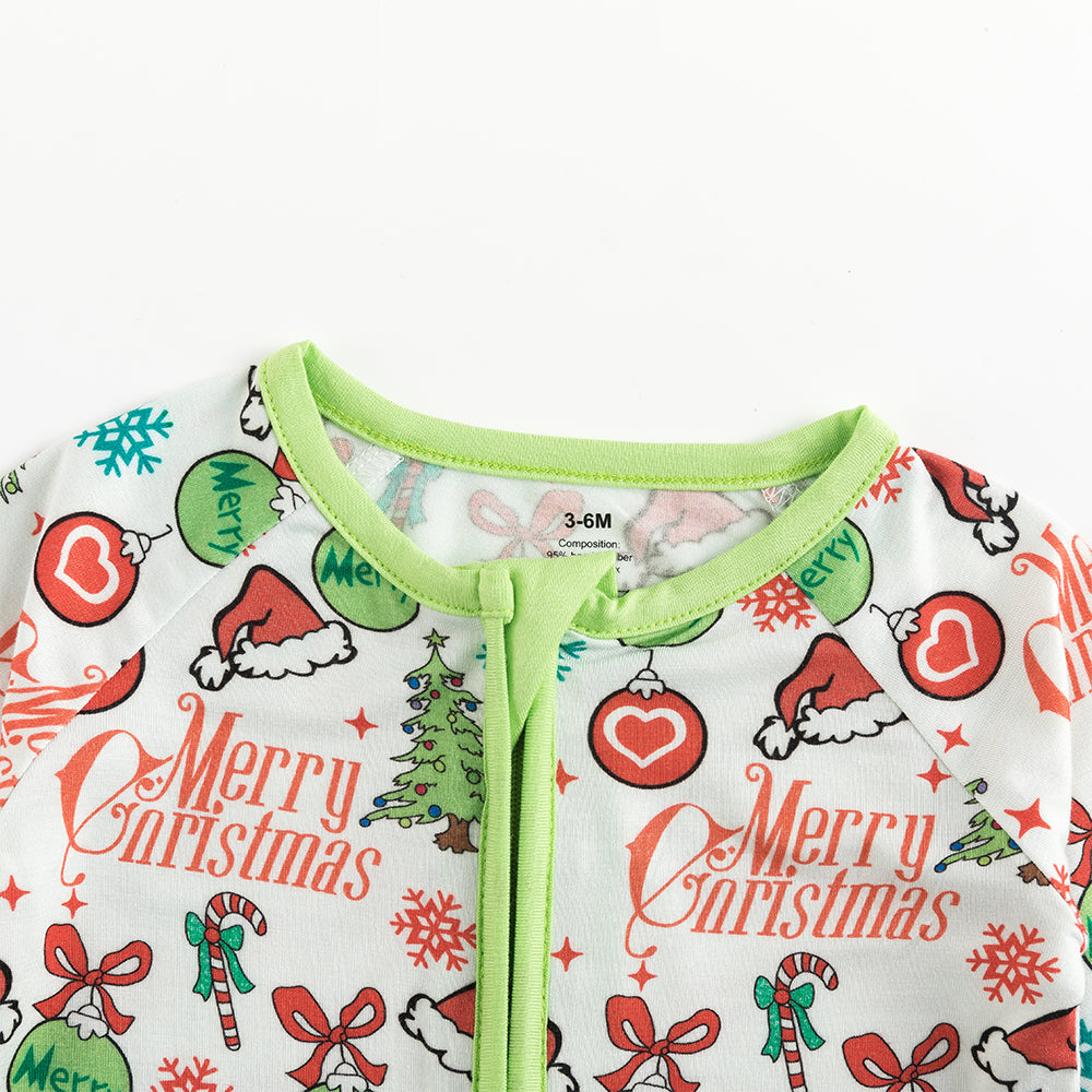 Merry Christmas Santa Hat Baby Bamboo Zipper Romper Pajamas