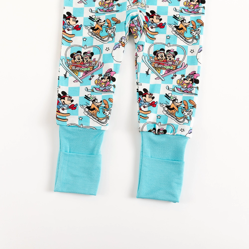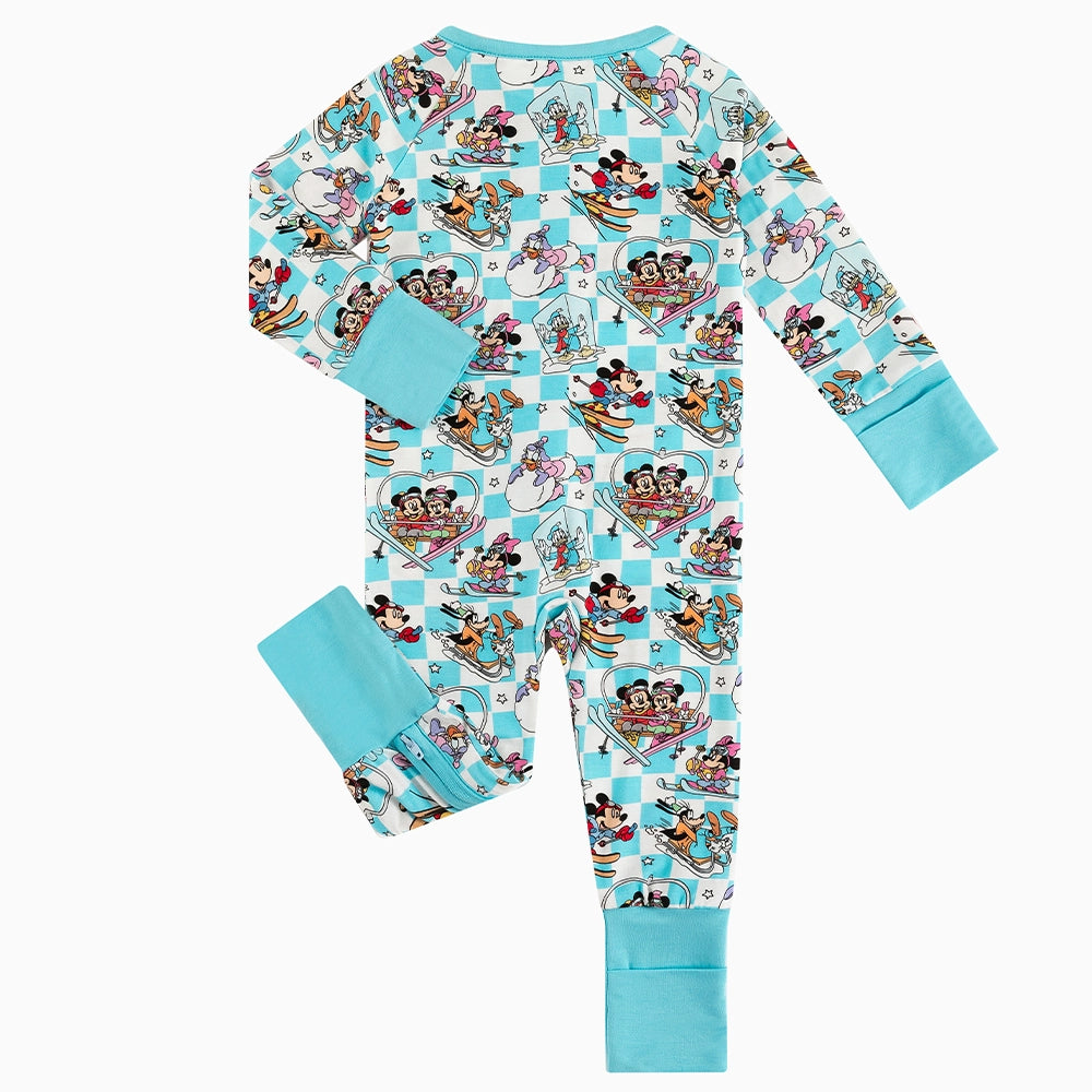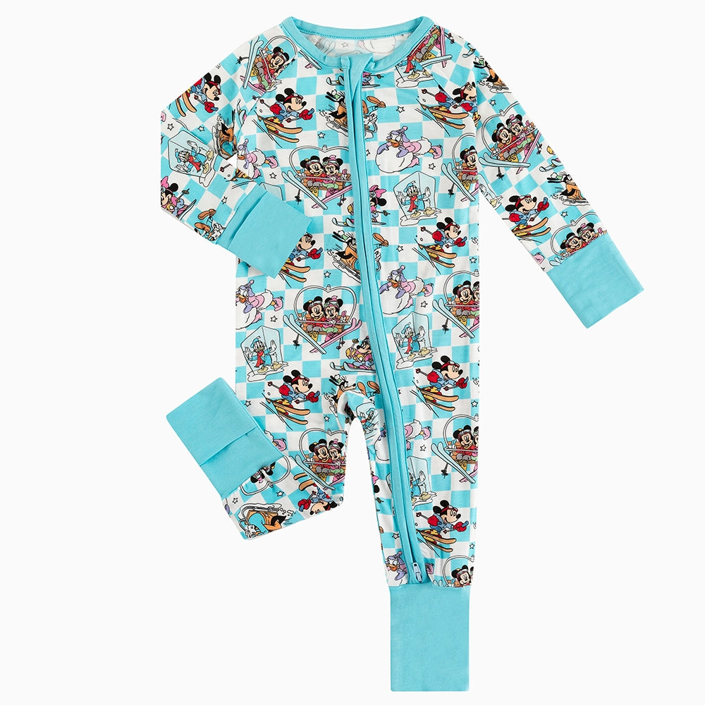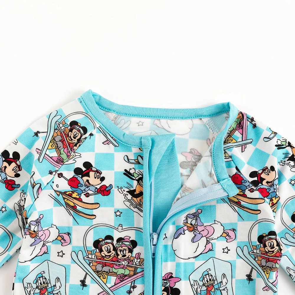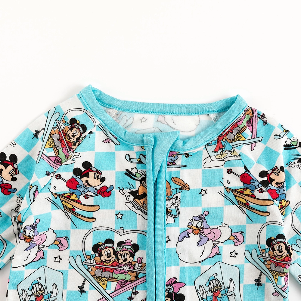 Mouse Skiing Baby Bamboo Zipper Romper Pajamas