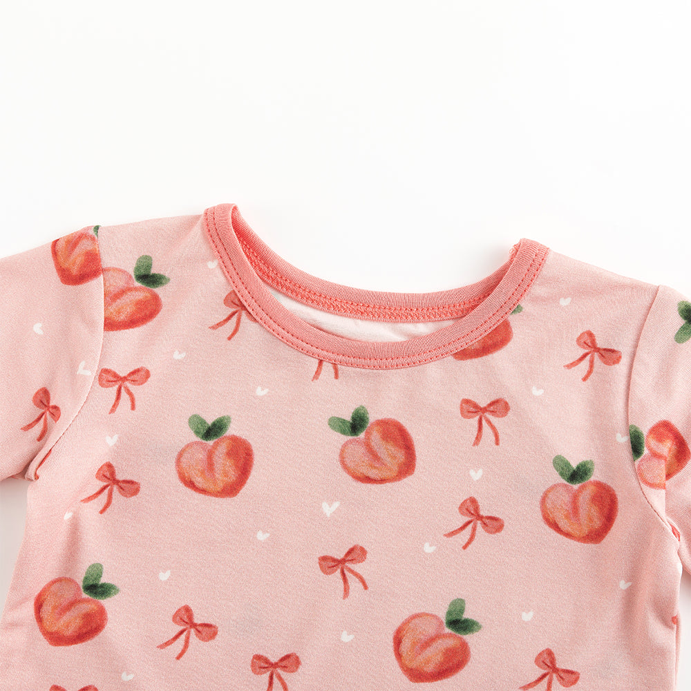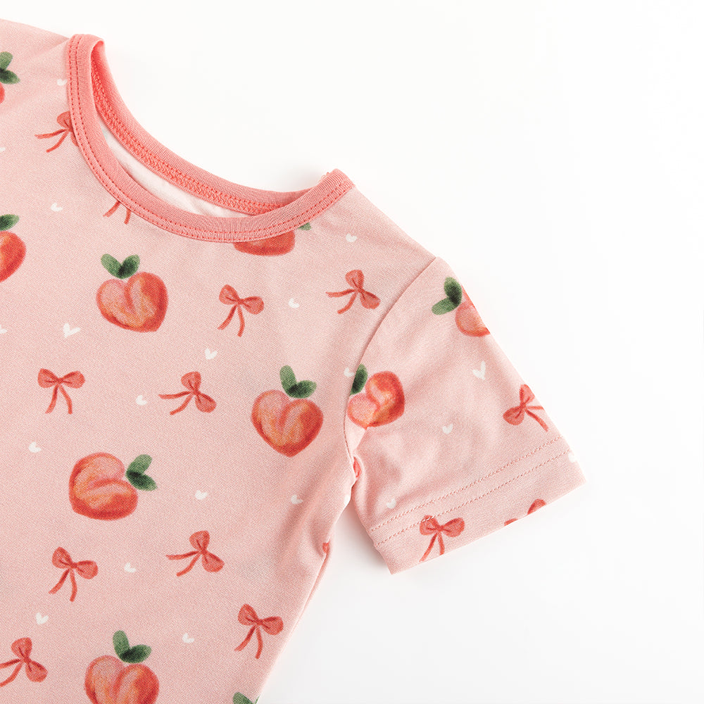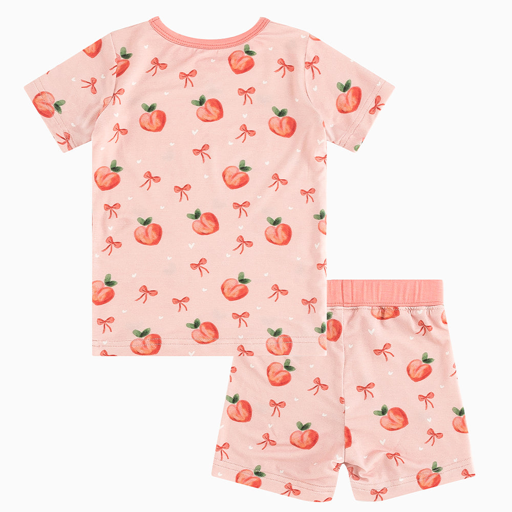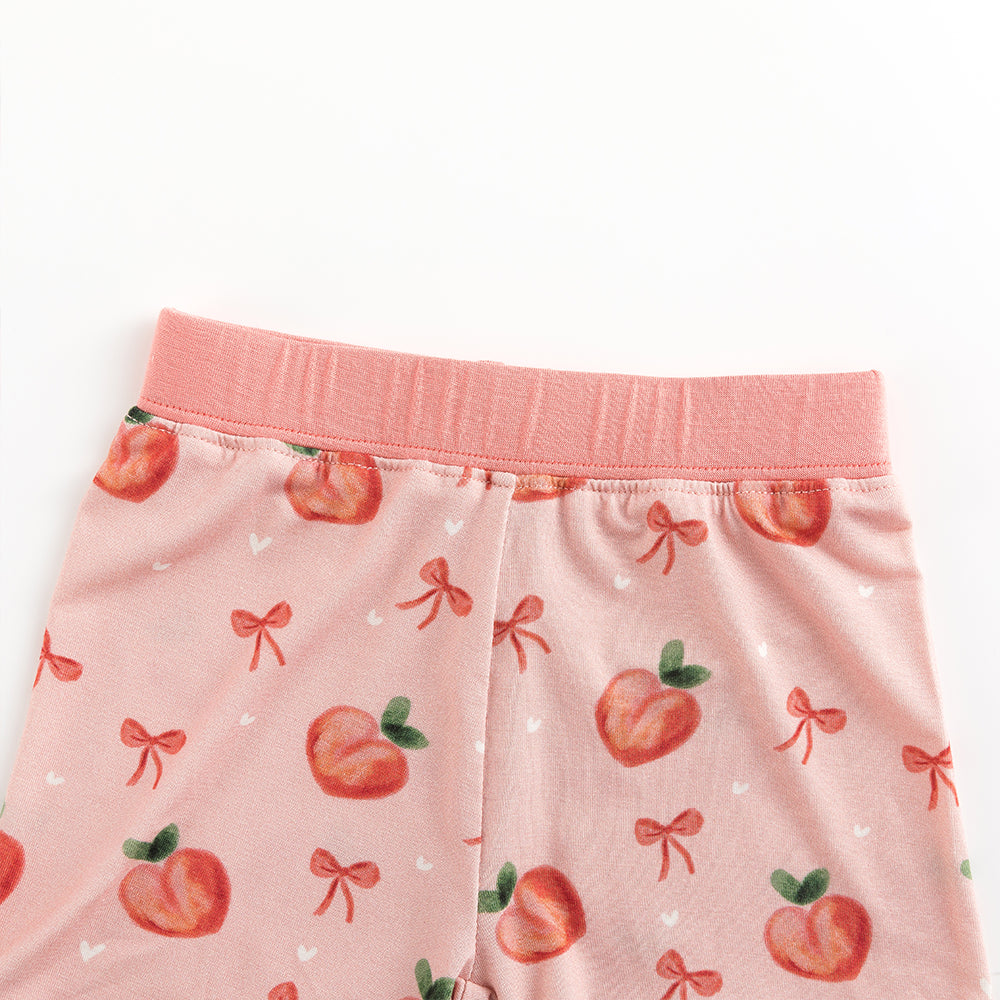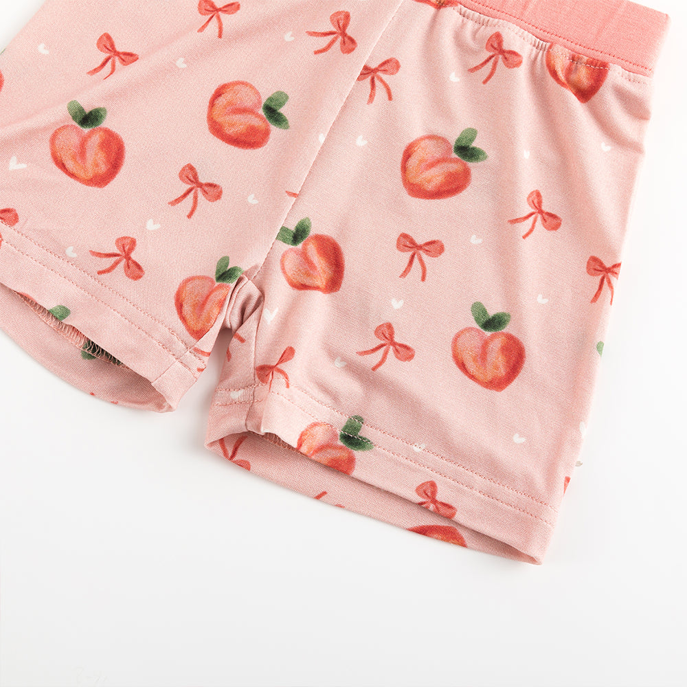 Peach Bow Bamboo Shorts Kids Pajama Sets