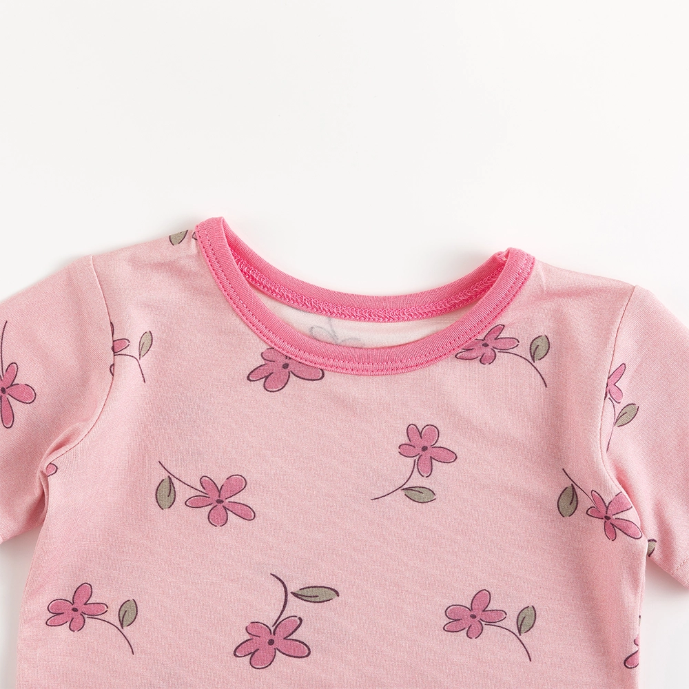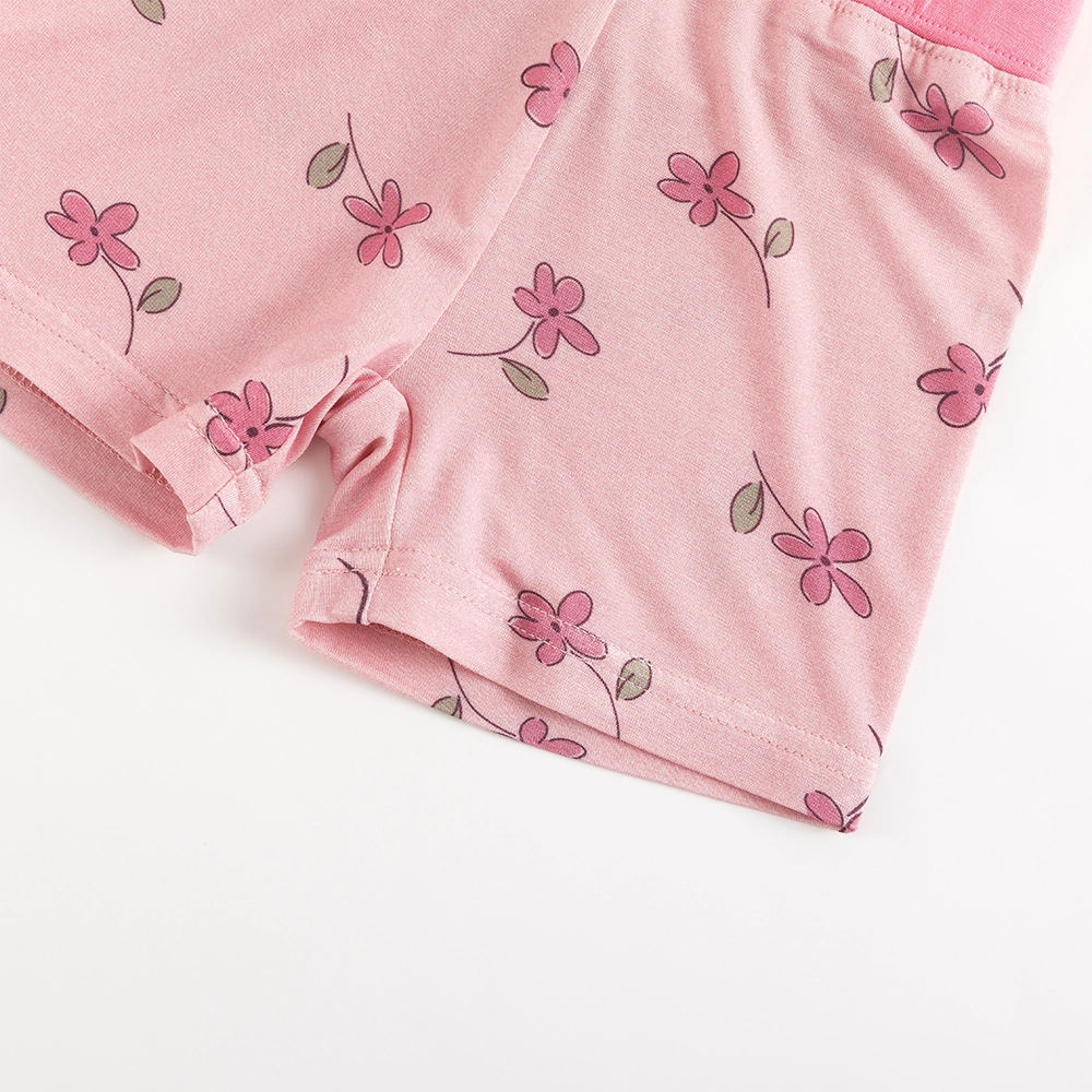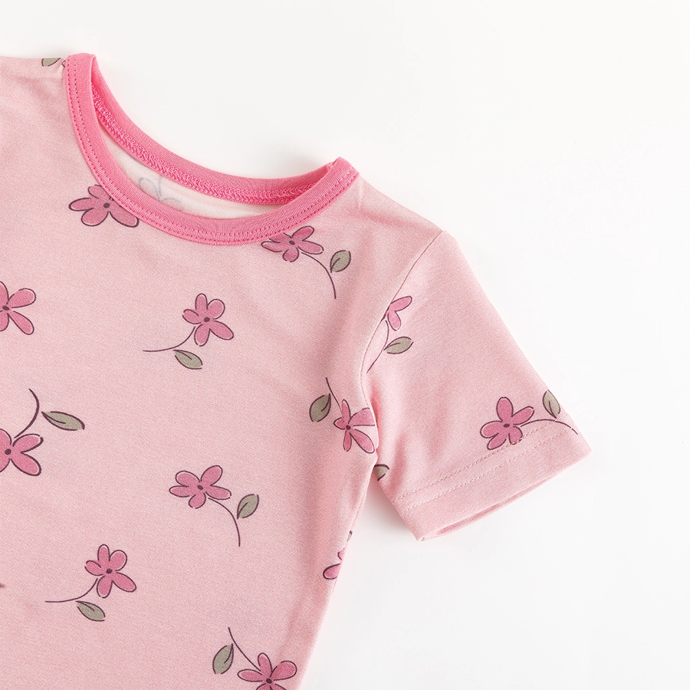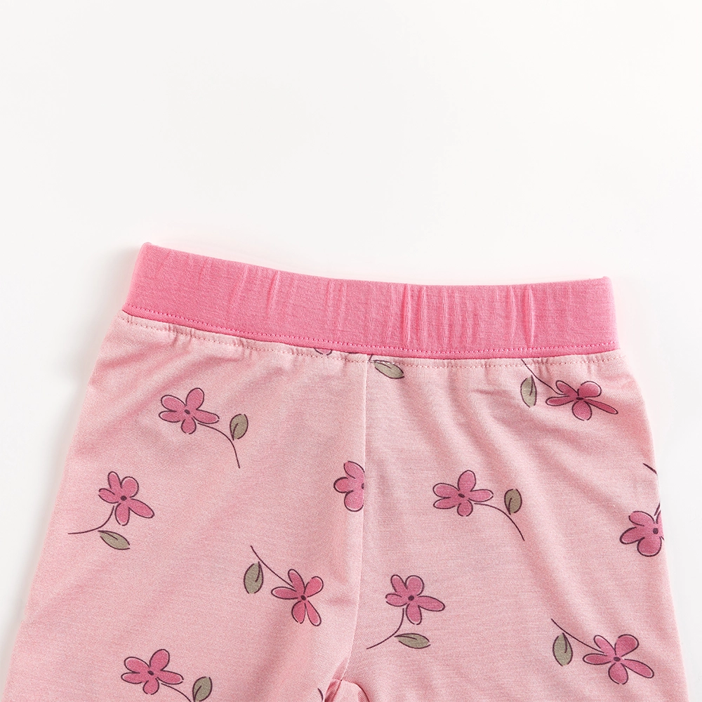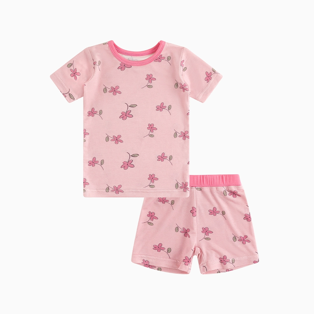 Pink Flower Bamboo Shorts Kids Pajama Sets