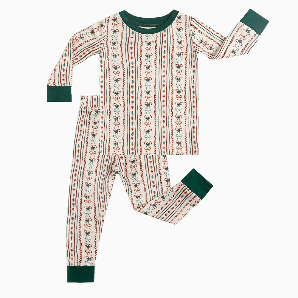 Striped Bow Bamboo Long Sleeve Pajama Set